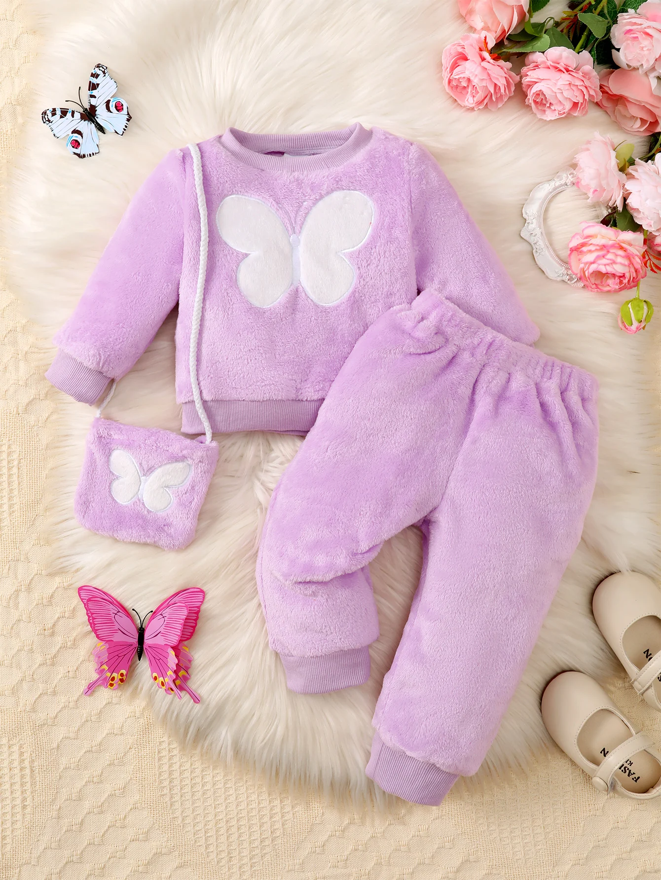 Winter 0-1 Years Old Infant Baby Girls Butterfly Embroidery Pattern Woolen Style Long