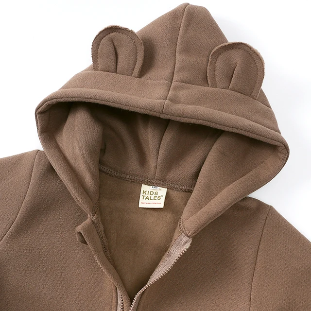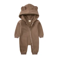 Winter Baby Boy Girl Clothing Cute Bear Ear Fleece Hooded Jumpsuit Knitted Zipper Cotton Rompers New Born Baby Clothes