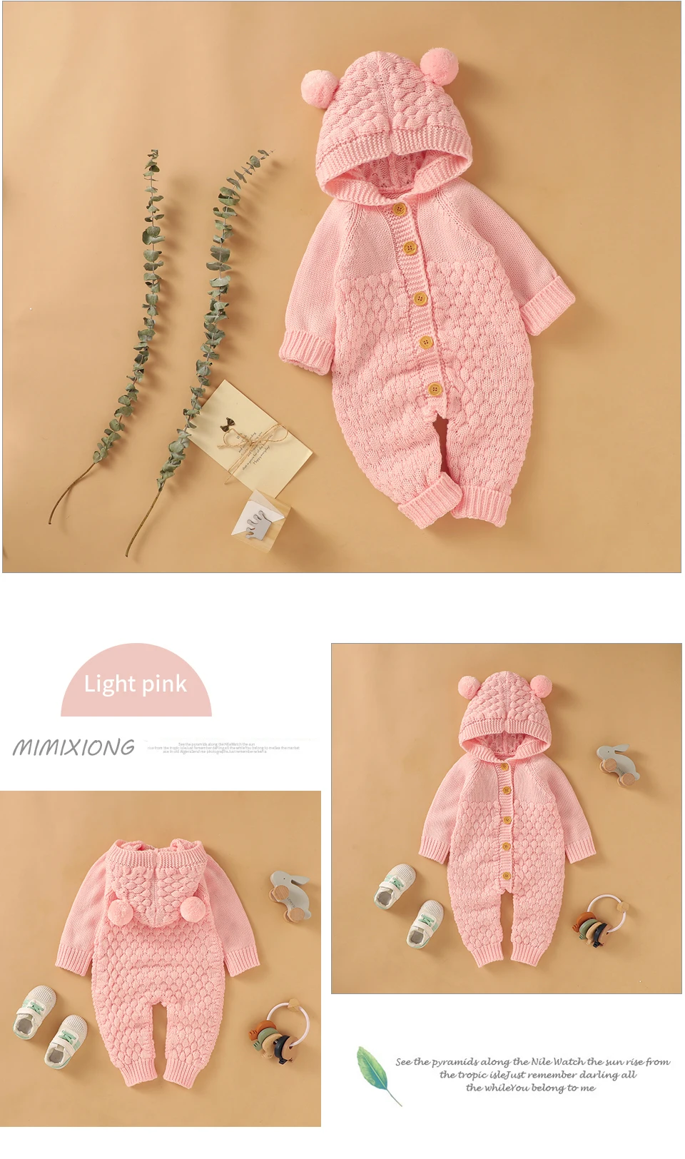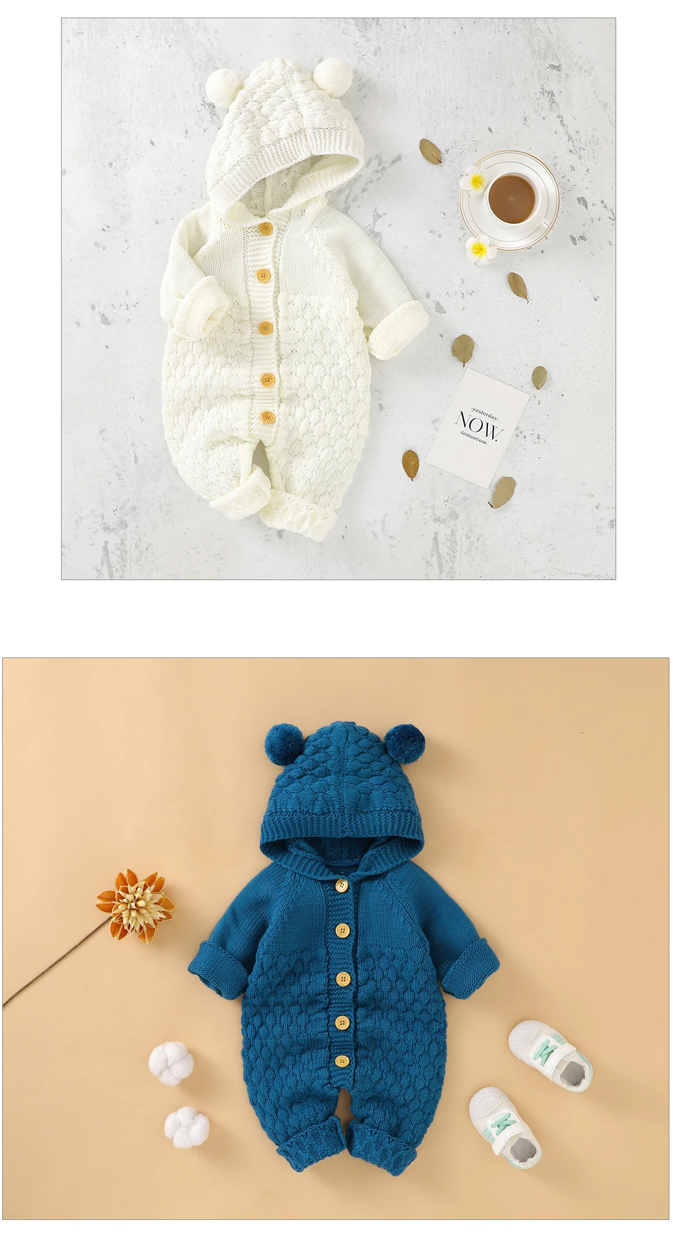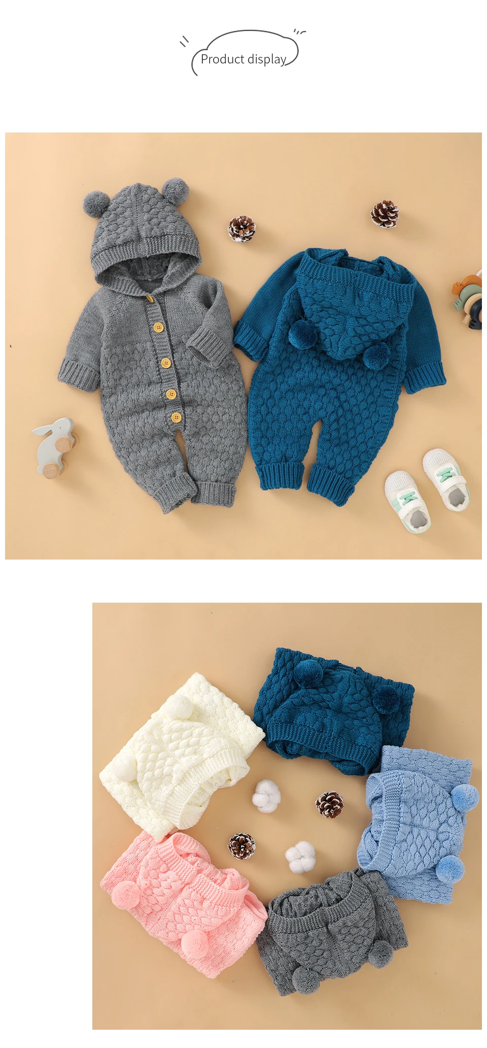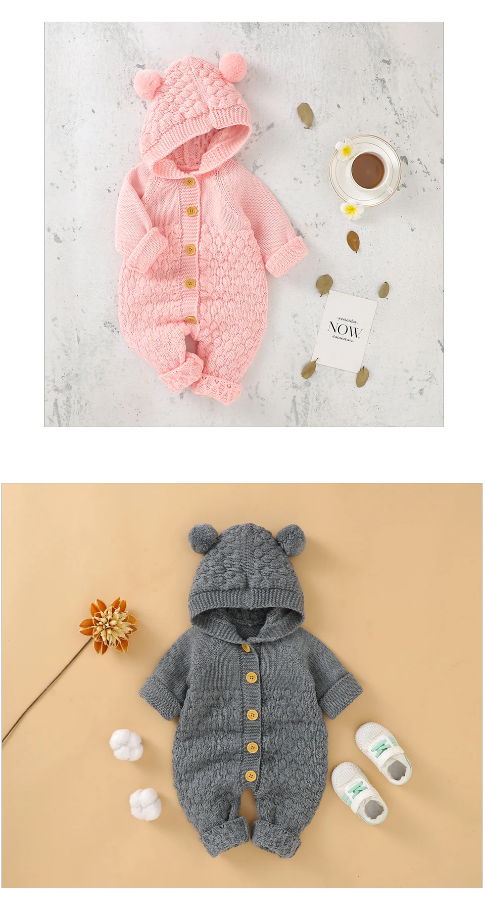 Winter Baby Rompers Clothes Autumn Solid Hooded Long Sleeve Knit Newborn Boys Girls Jumpsuits Playsuits