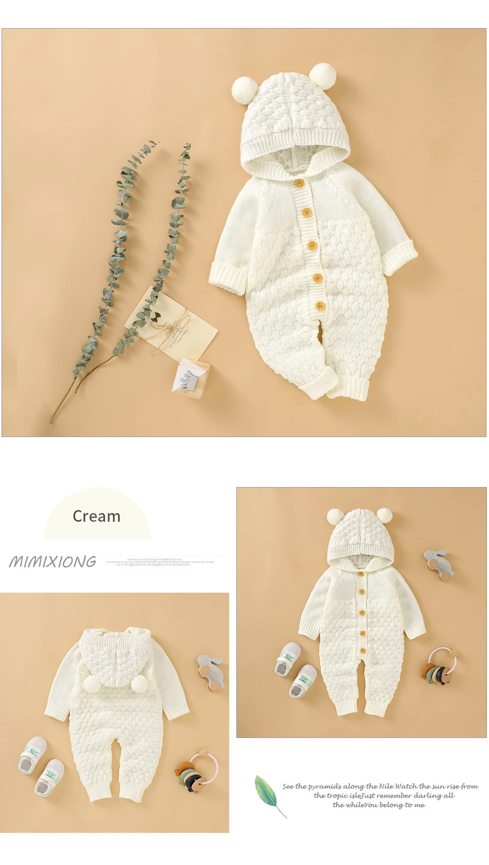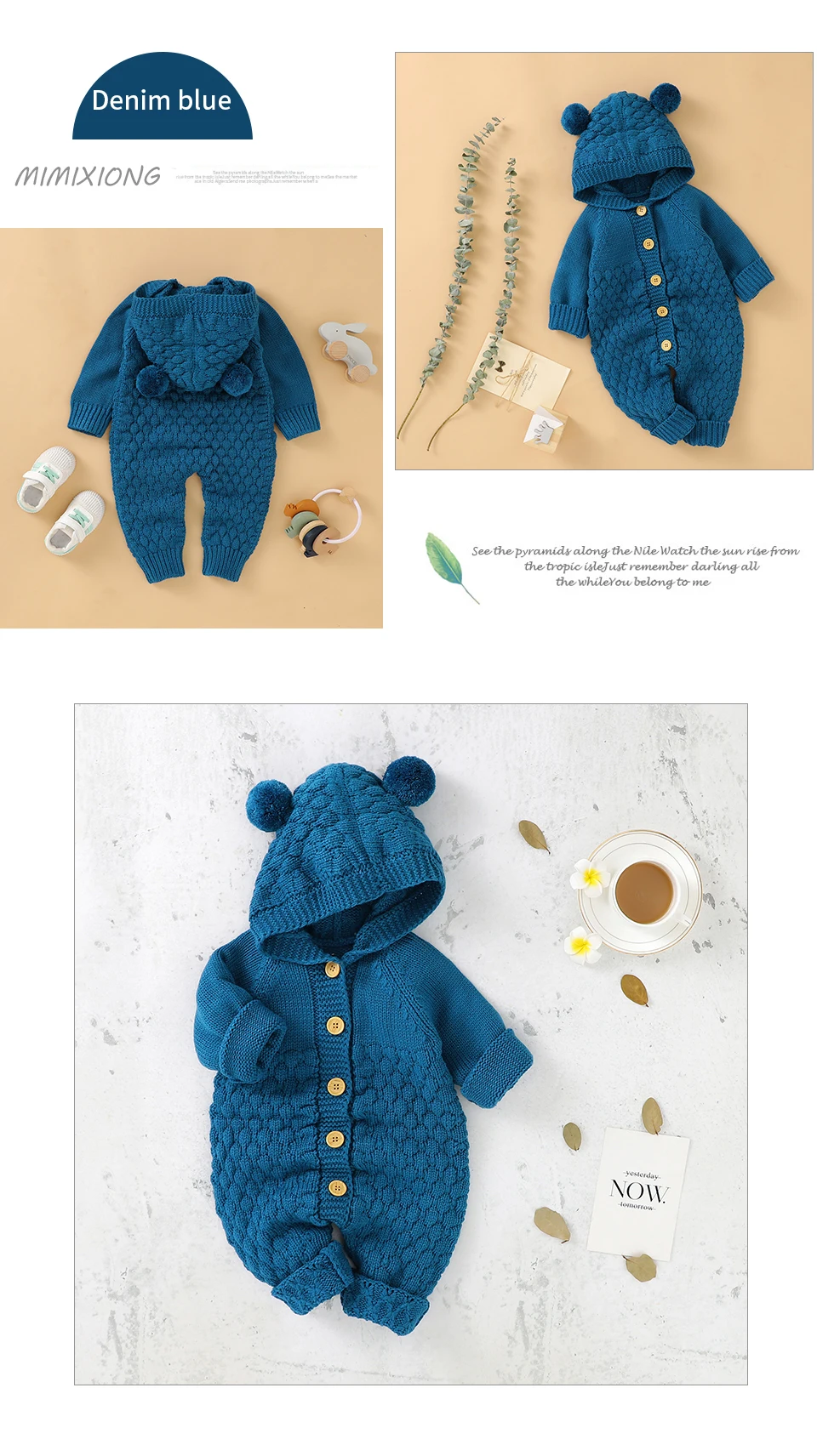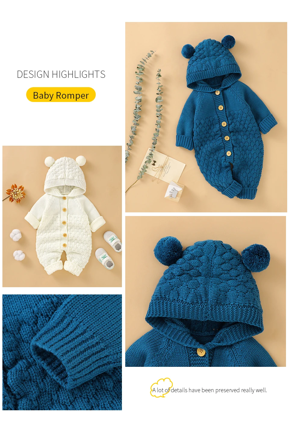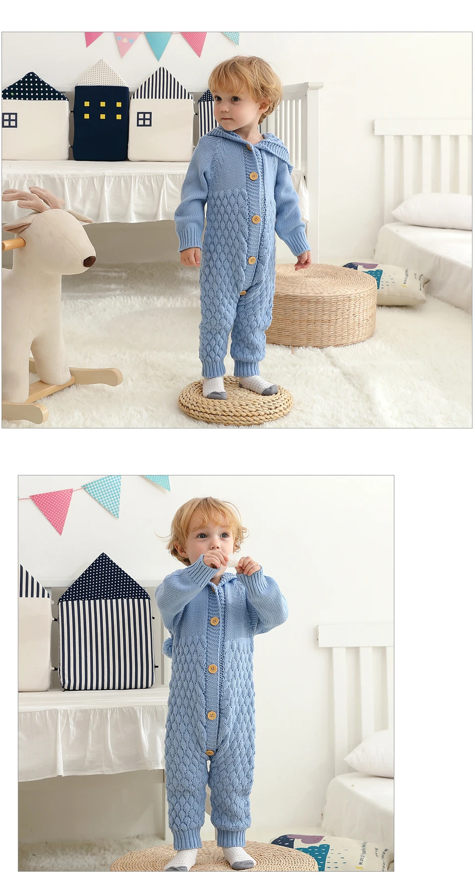 Winter Baby Rompers Clothes Autumn Solid Hooded Long Sleeve Knit Newborn Boys Girls Jumpsuits Playsuits