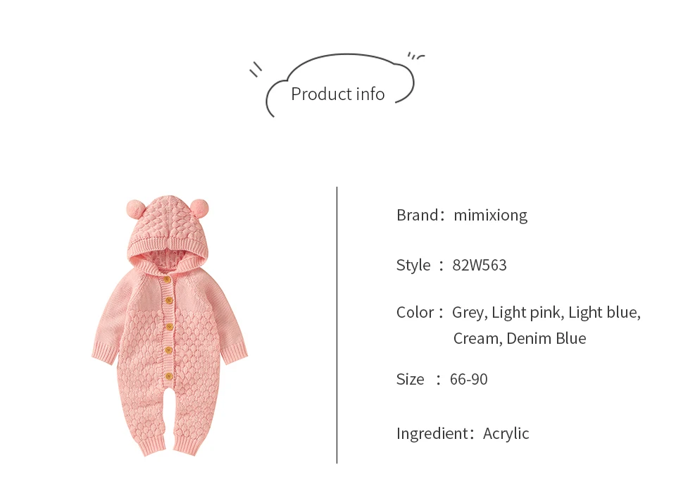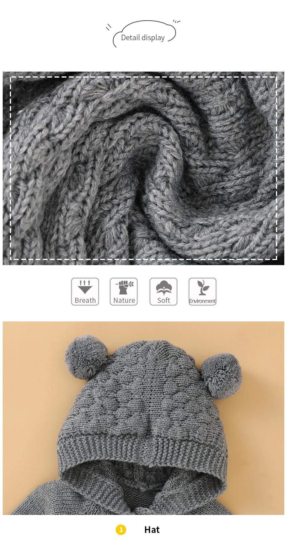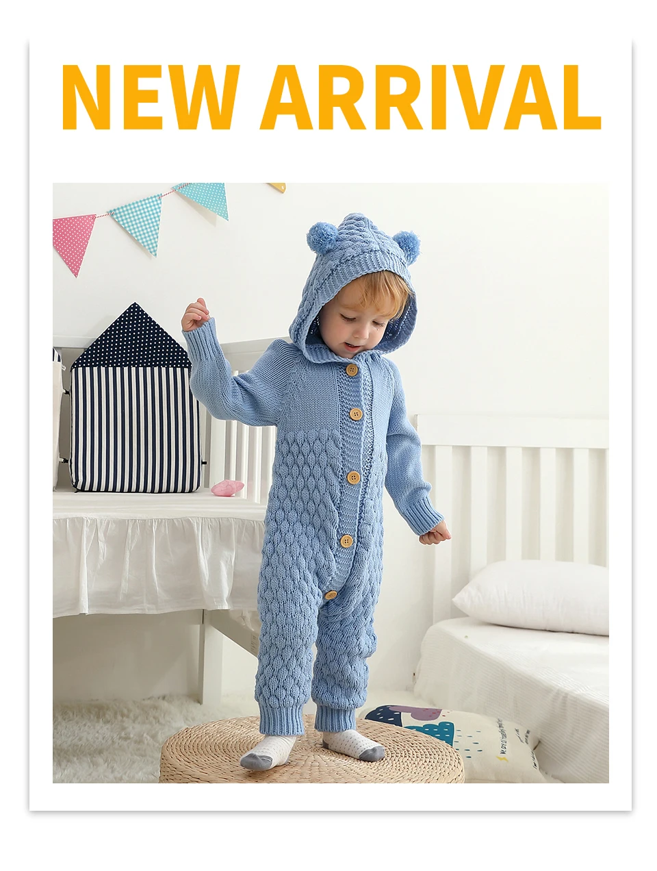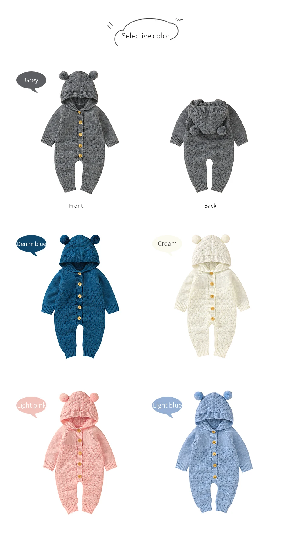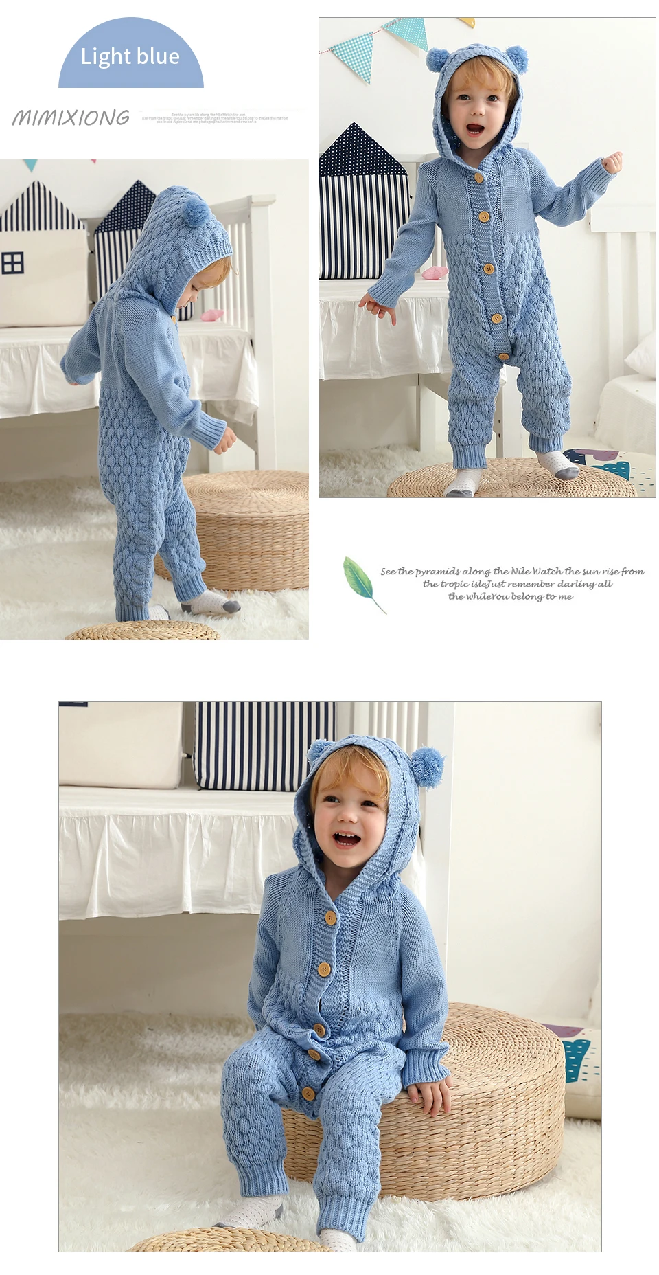 Winter Baby Rompers Clothes Autumn Solid Hooded Long Sleeve Knit Newborn Boys Girls Jumpsuits Playsuits