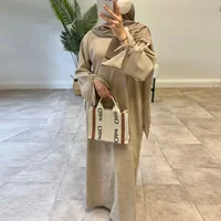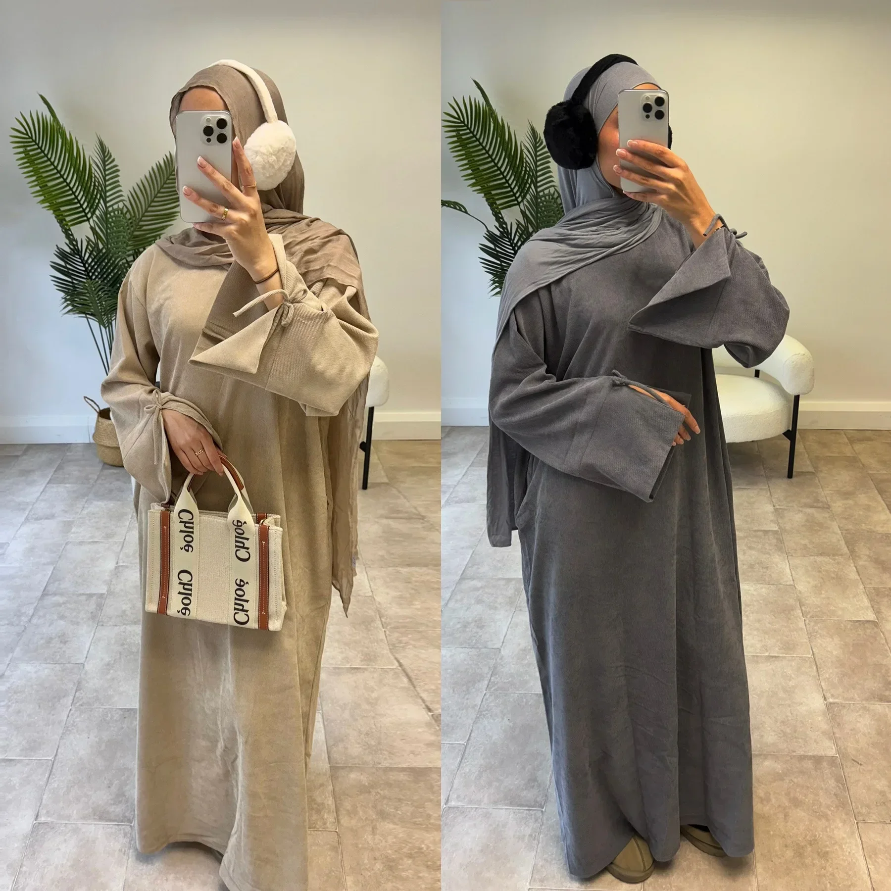 Chic Coffee Color Outer Piece Abaya Geometric Cuff Embroidery Ideal Modern Muslim Women Suitable for Daily/Semi formal Occasion