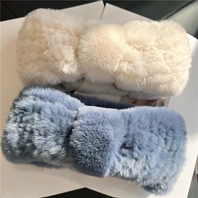 Winter Fur Headbands For Women Knitted Rex Rabbit Fur Scarf For Women Real Fur Head Wrap Ear Warmer Newest Fashion Hairband