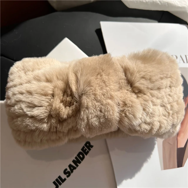 Knit rex rabbit fur headband