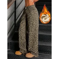 Winter Girls High Waist Leopard Print Thermal Jeans Female Snow Warm Casual Denim Pants Lady Classic Retro Plush Trousers