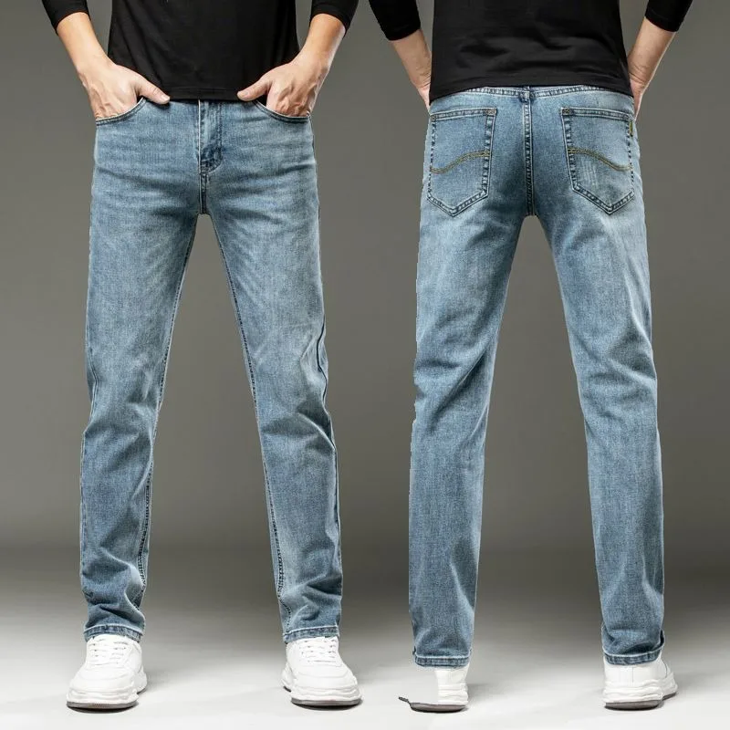 Men Fashion Straight Jeans Men 2025 New Stretch Slim Fit Pants Comfortable Soft Business Denim Trousers Male Brand Clothing