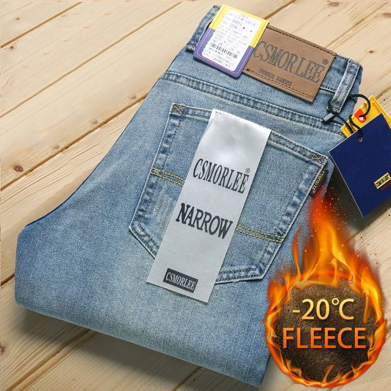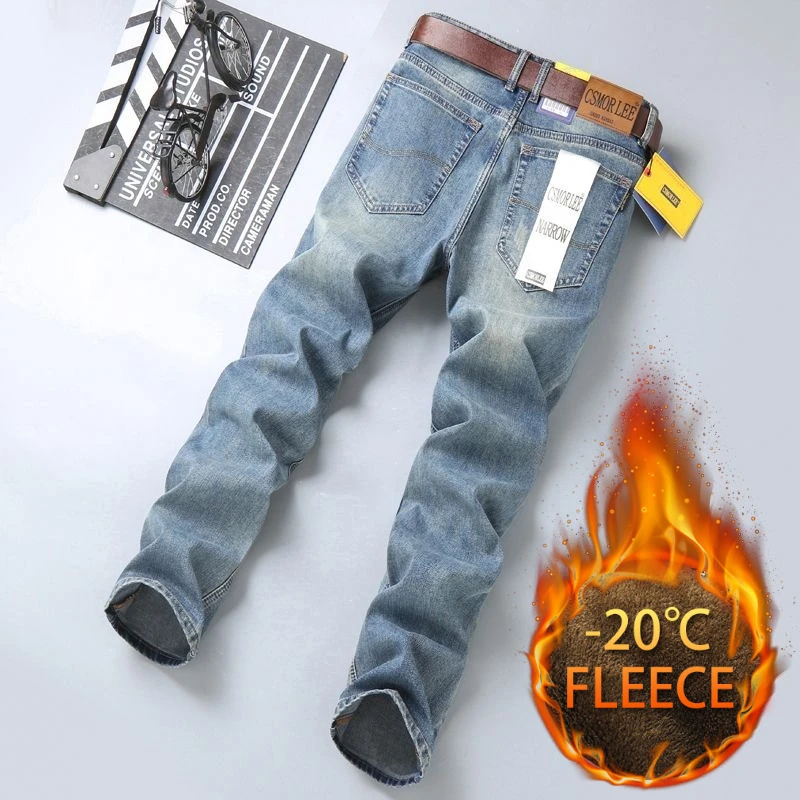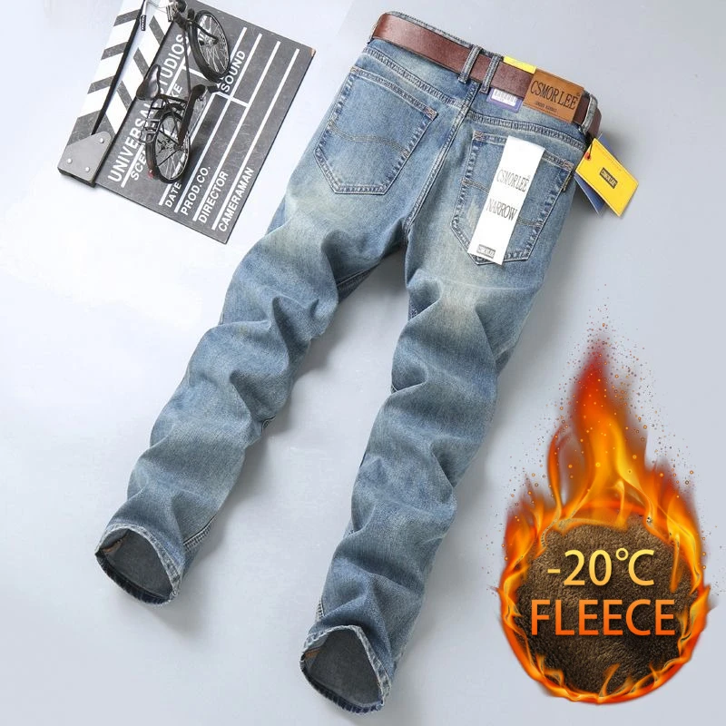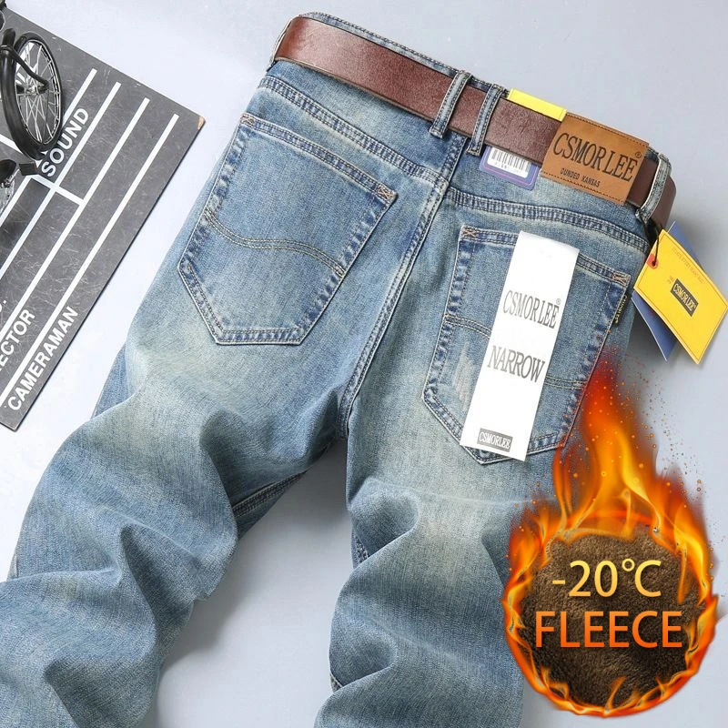 Winter Jeans for Men Plush Slim Straight-leg High-end Retro Trend Casual Long Pants Man Pants Men’s