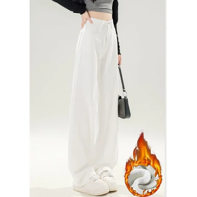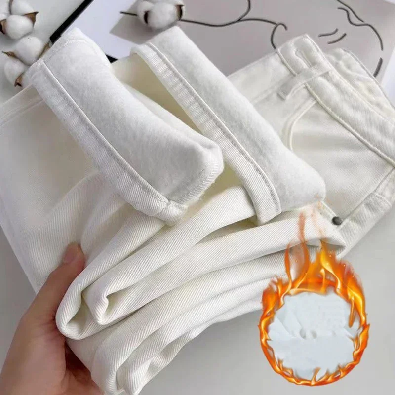 Winter Lady High Waist Solid Thermal Jeans Girls Snow Warm Casual Fleece Denim Pants Female Classic Daily Plush Trousers