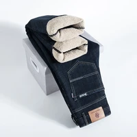Winter Lamb Fluff Denim Straight Pants Men Thicken Big Size 40 Jeans High Waist Stretch Jeansy Fleece
