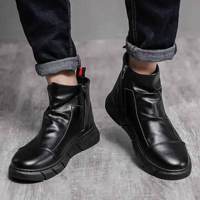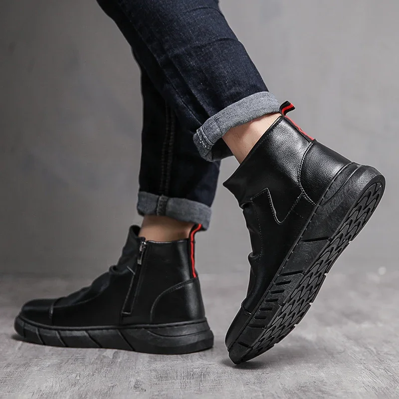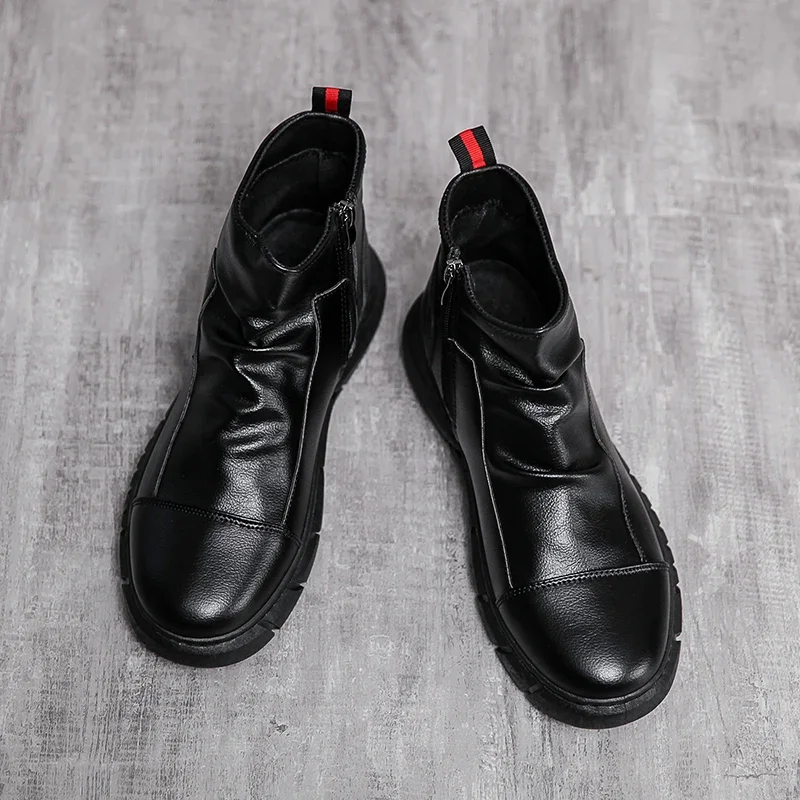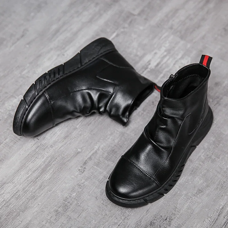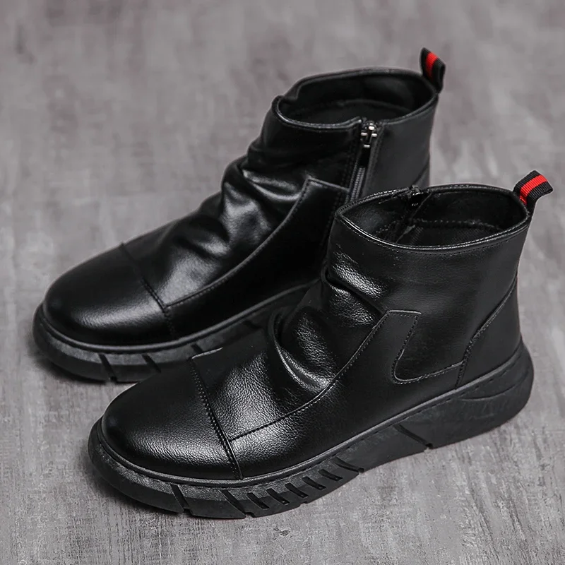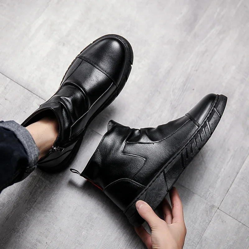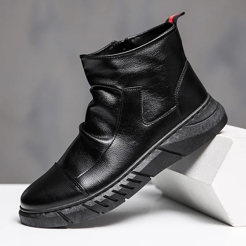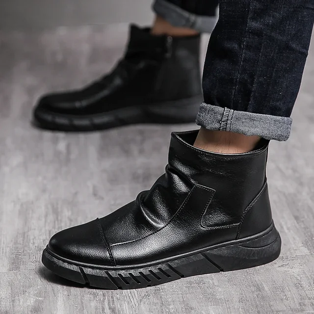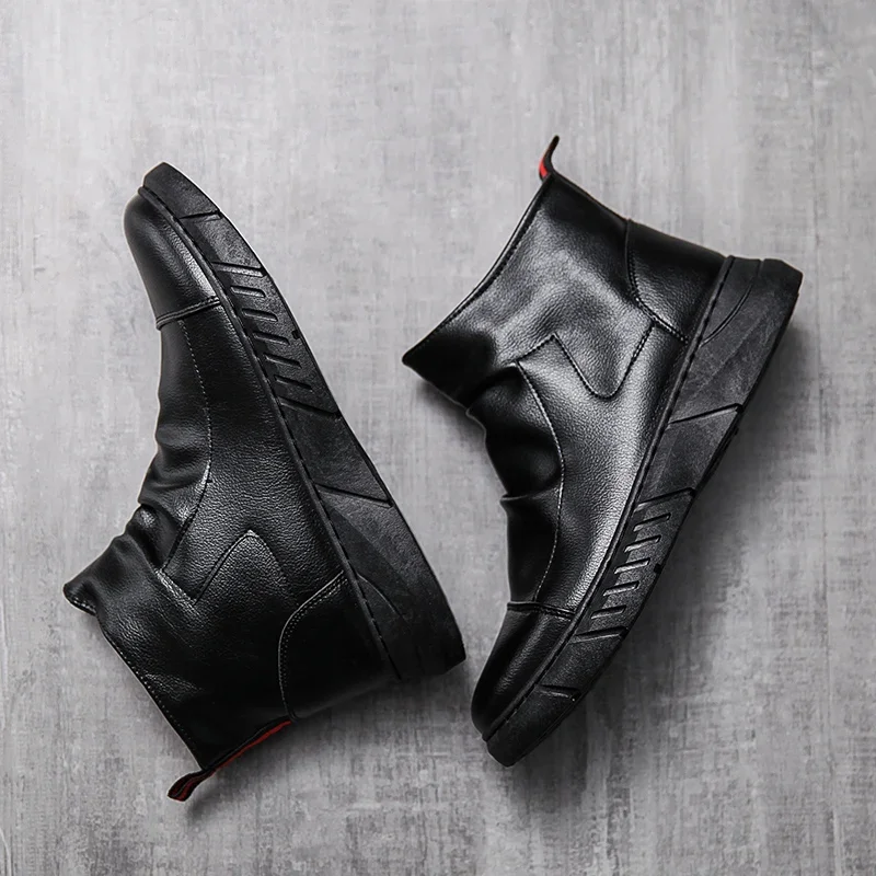 Winter Leather Men Ankle Boots Comfortable Soft Mens Casual Boots No-slip High Top Work Boots Fashion