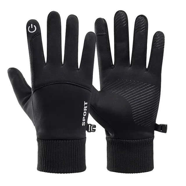 Men Winter Waterproof Cycling Gloves Outdoor Sports Running Motorcycle Ski Touch Screen Fleece Gloves Non-slip Warm Full Fingers