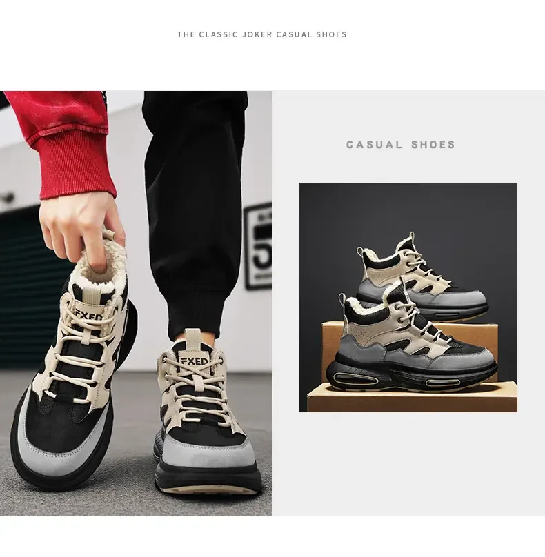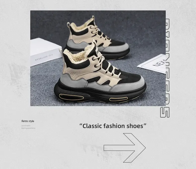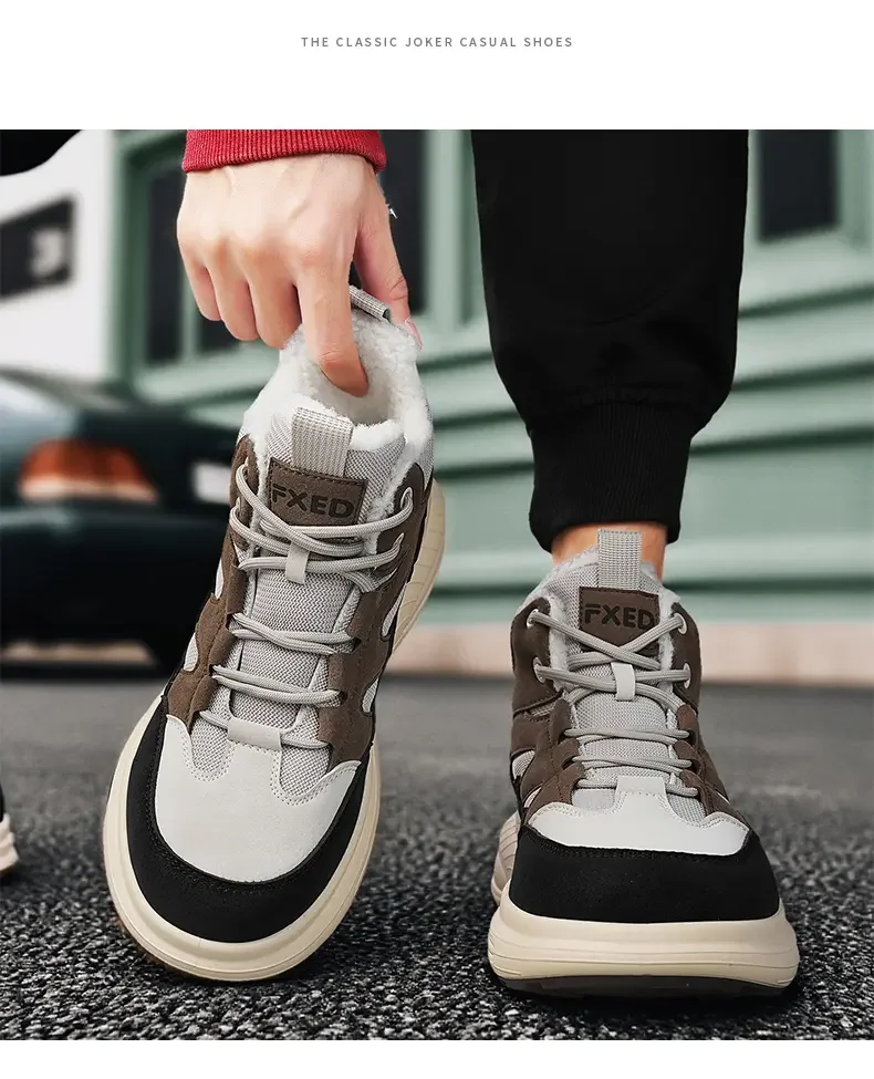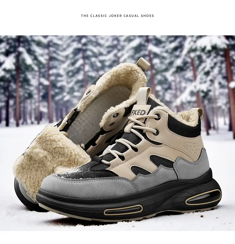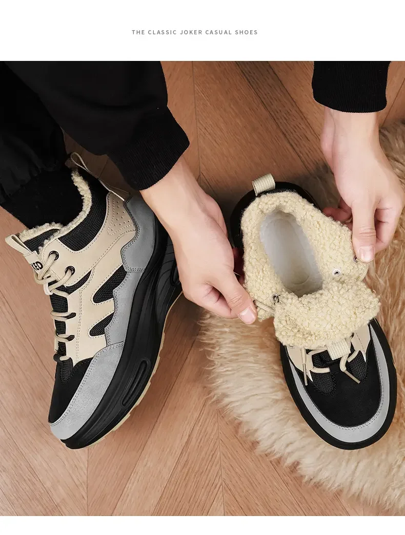 Winter Men’s Boots Warm Plush Snow Boots Warm Comfortable Anti Slip Outdoor Short Boots Lace Up