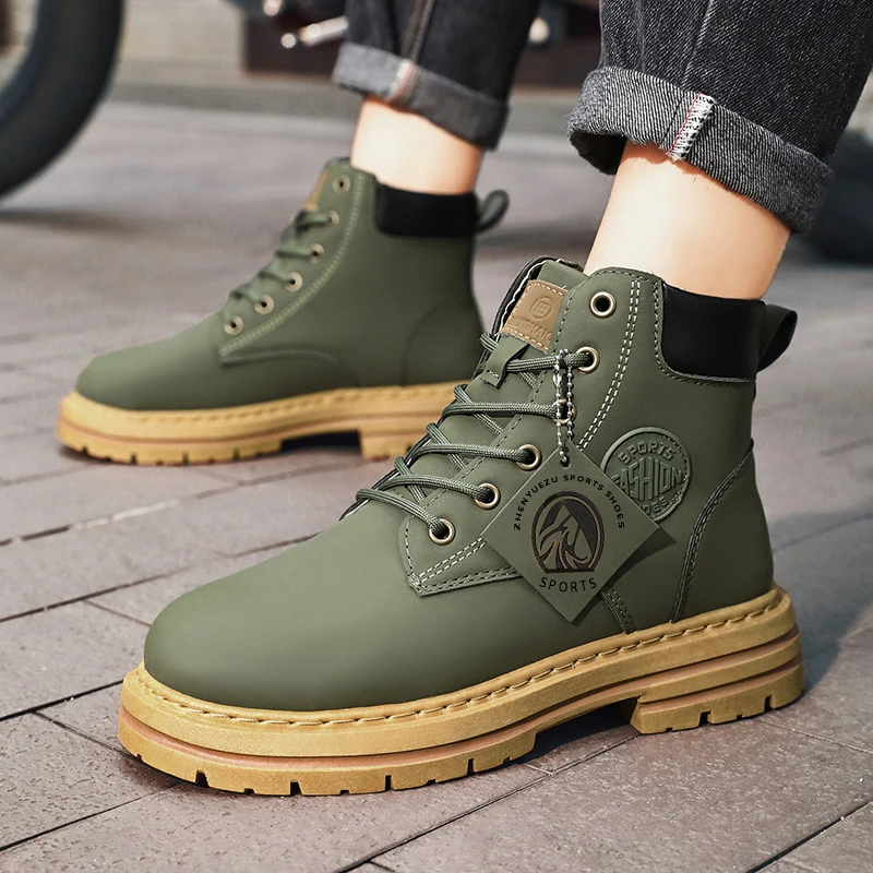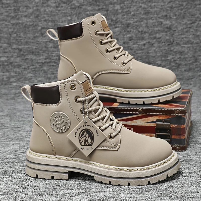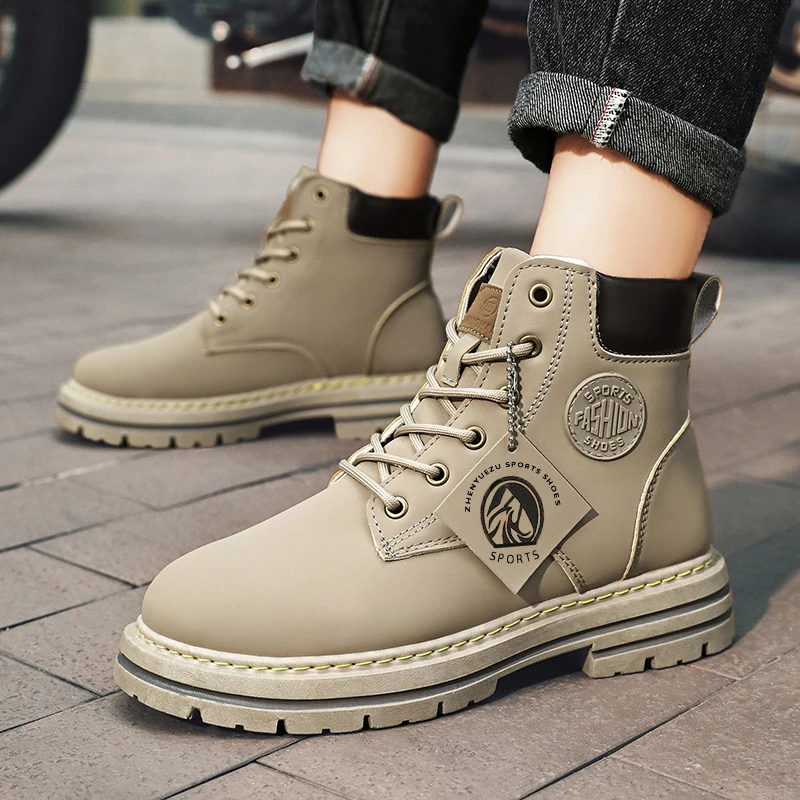 Winter men’s leather waterproof high top boots fashionable and versatile motorcycle boots warm