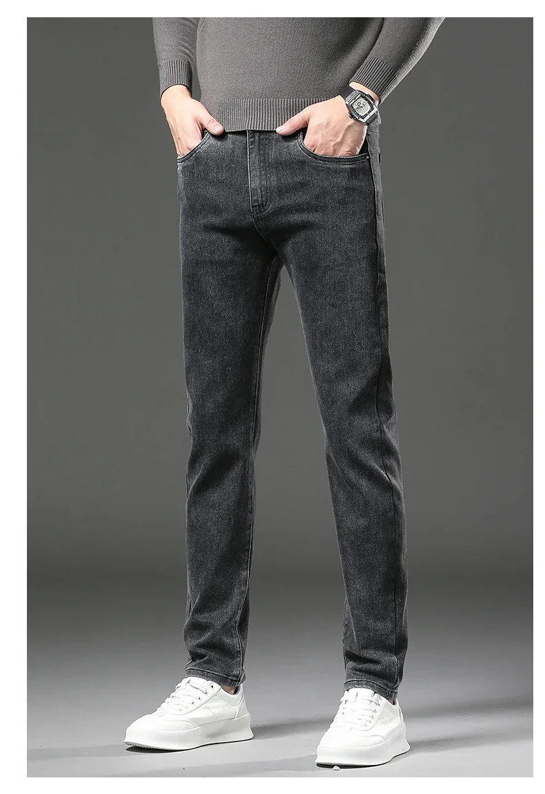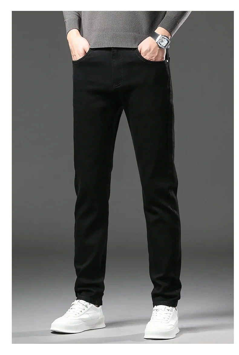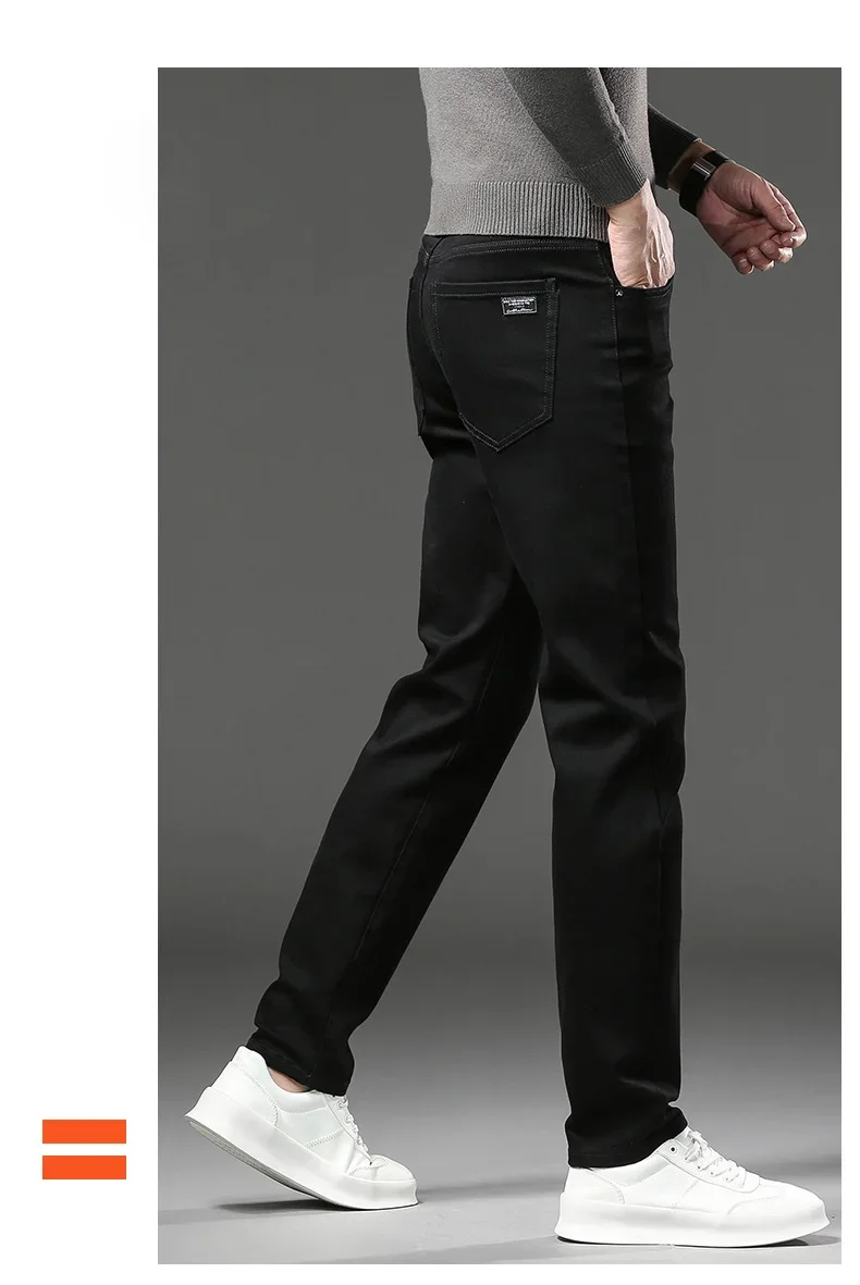 Winter Men's Slim Fleece Jeans Thick Elastic Denim Pants Warm Straight Casual Male Clothes Fashion Plush Trousers