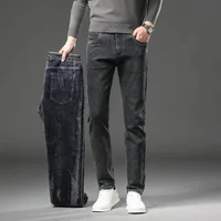Winter Men's Slim Fleece Jeans Thick Elastic Denim Pants Warm Straight Casual Male Clothes Fashion Plush Trousers