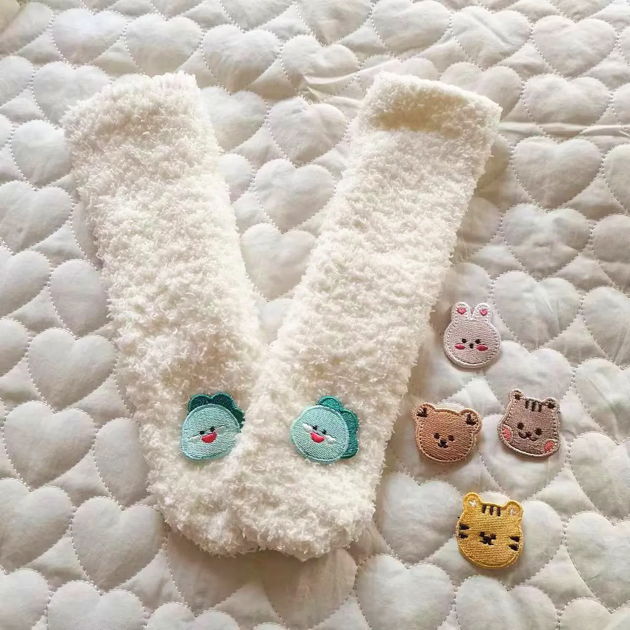 Winter New Baby Fleece Padded Socks Warm Thicken Toddler Girls Floor Socks Cartoon Embroidery Infant Sock Sleeves