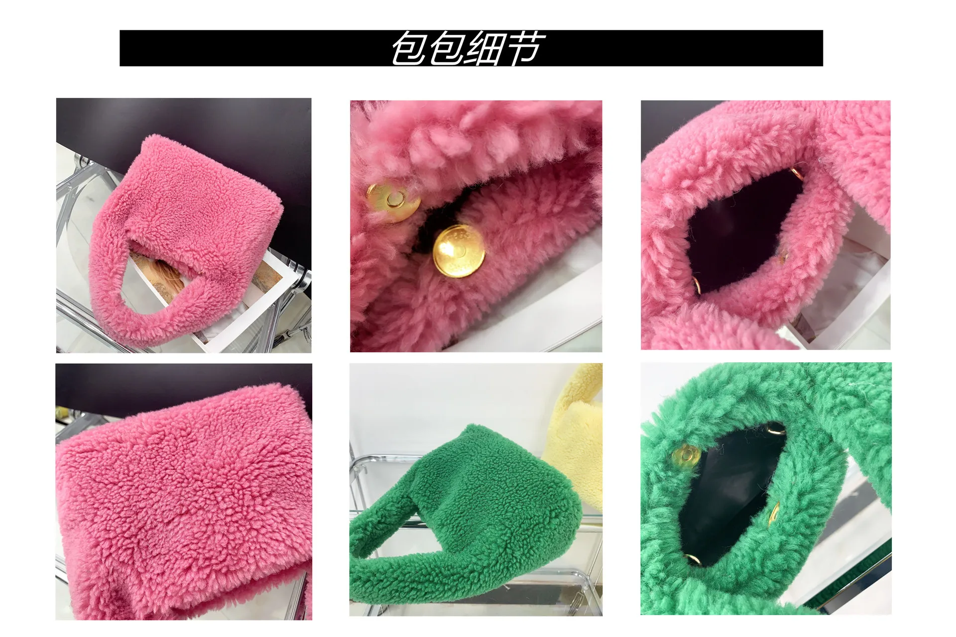 Winter New Lamb Wool Small Bag 2023 Fashion Knotted Faux Fur HandBag Women’s Furry Short Handle Clutch Soft Plush Warm Bag