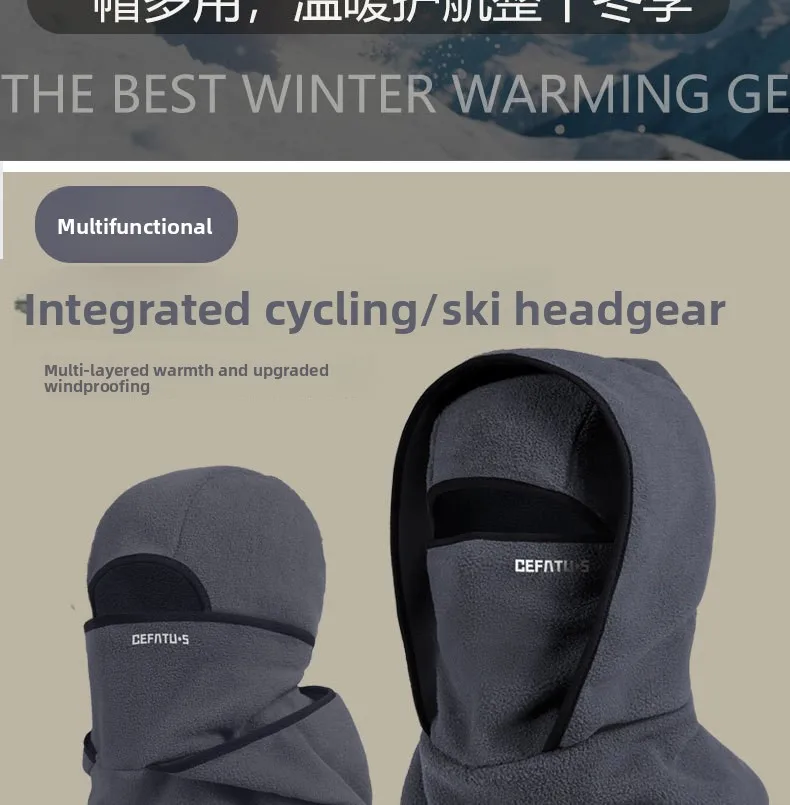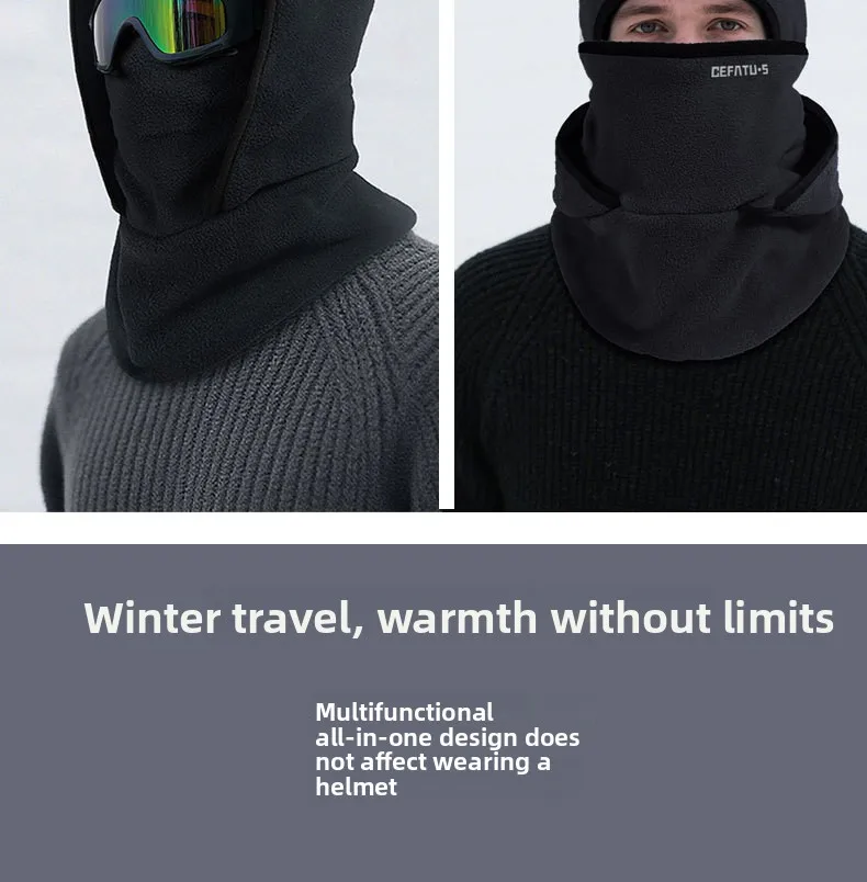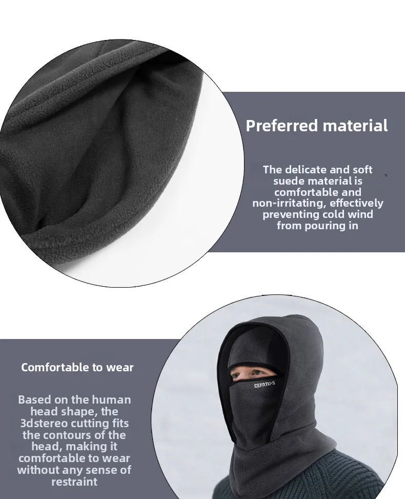 Winter Windproof Balaclava Hat Men Neck Warmer Ear Protection Thickened Polyester Fiber Outdoor Headwear Cycling Face Mask