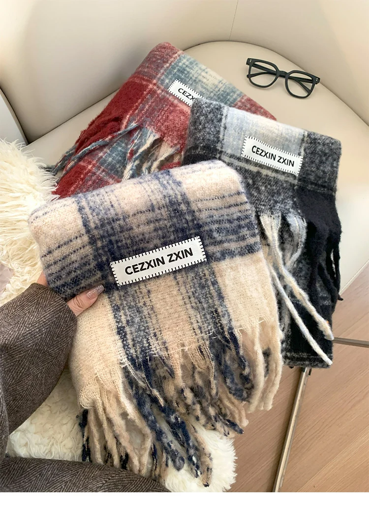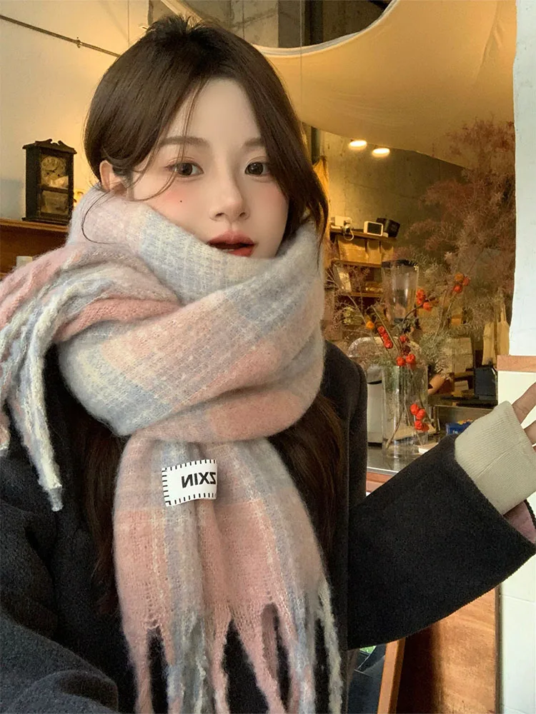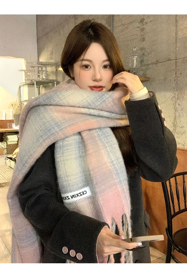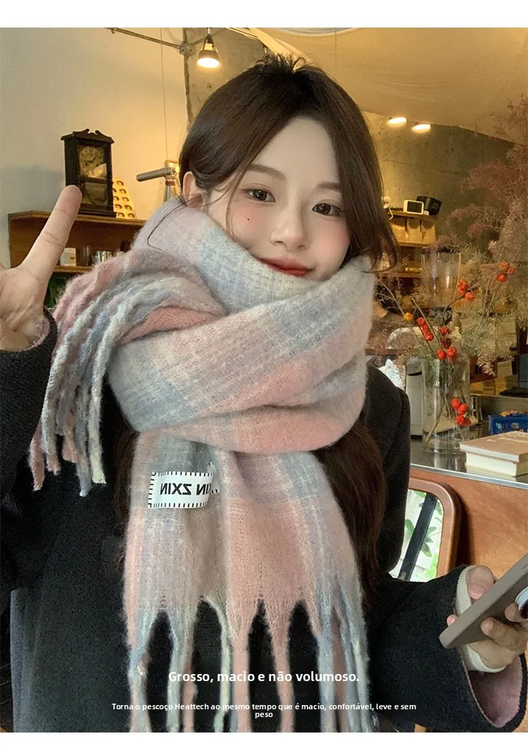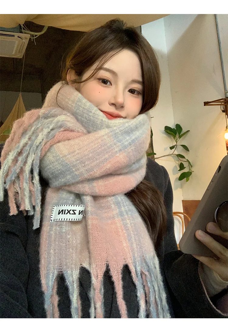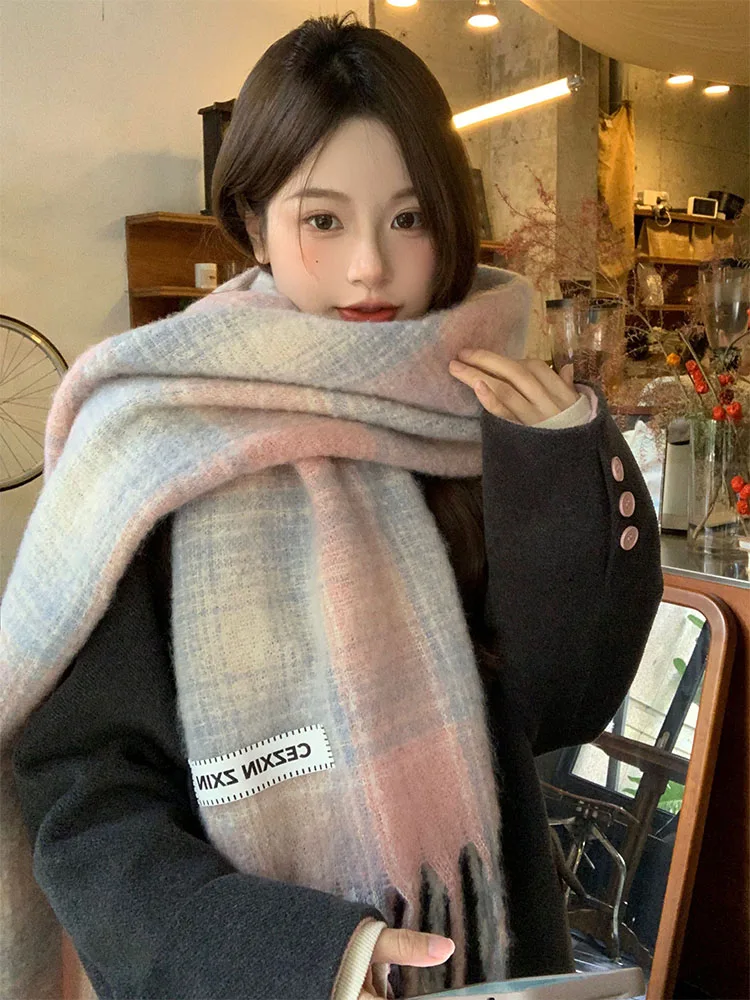Exude elegance with this Korean-style plaid scarf, perfect for adding a touch of sophistication to any winter outfit.