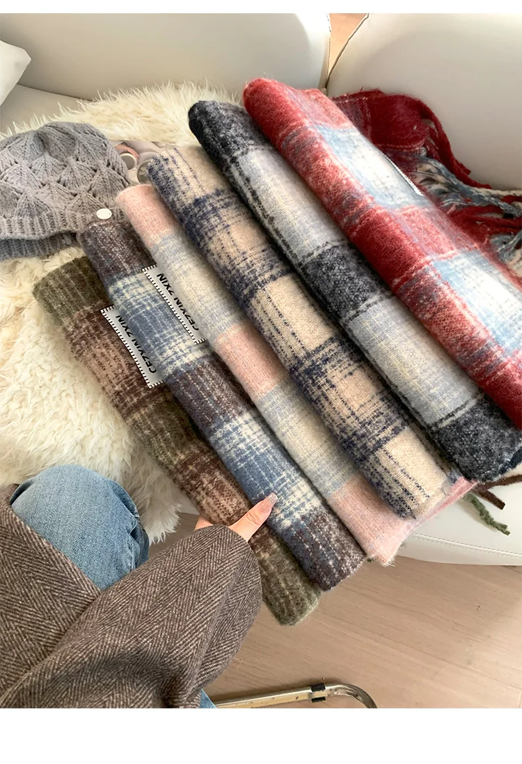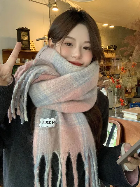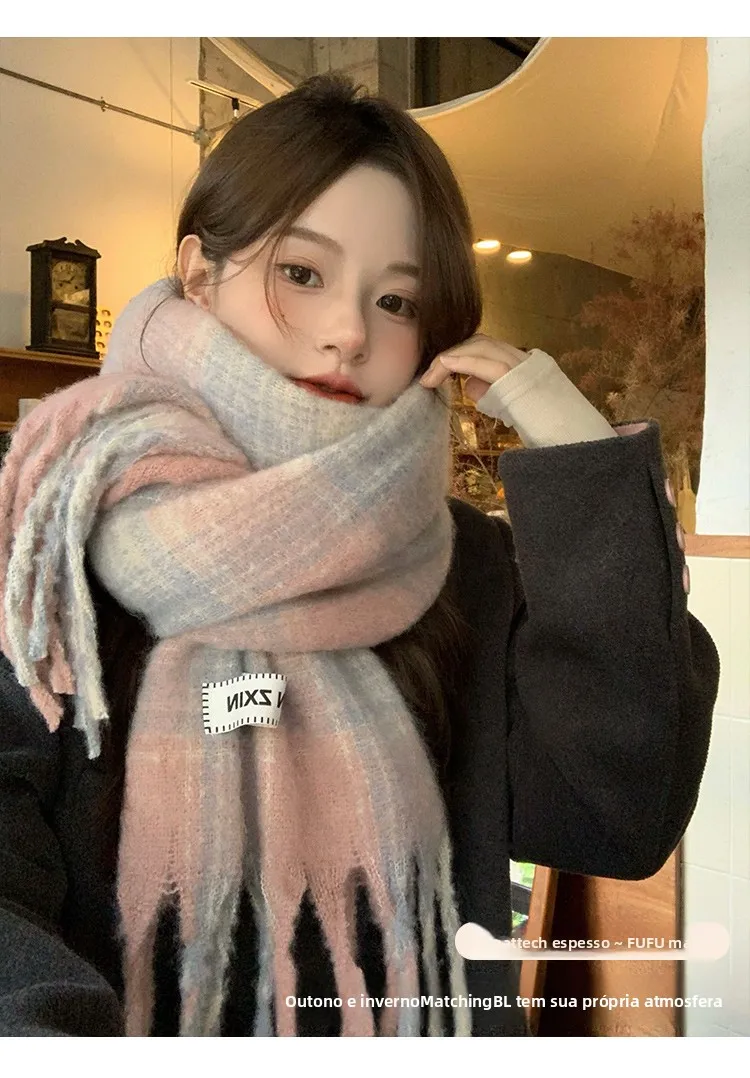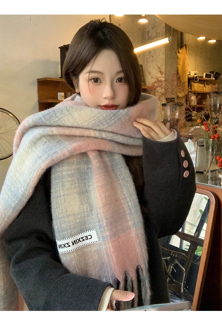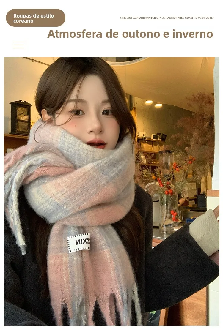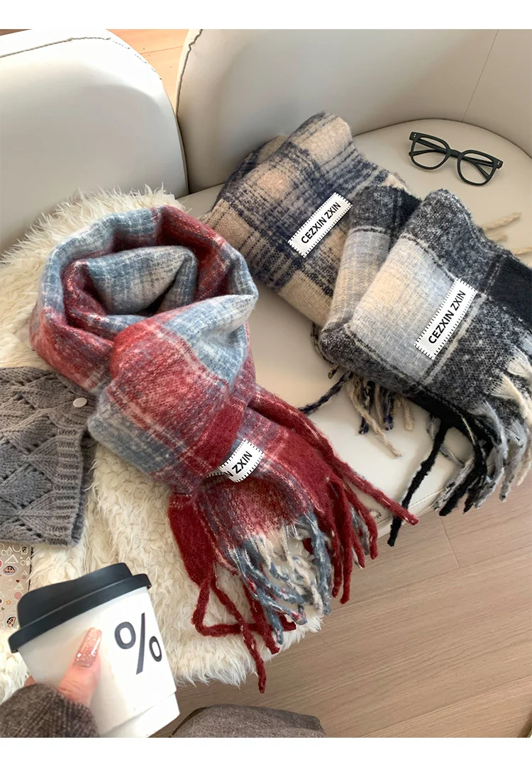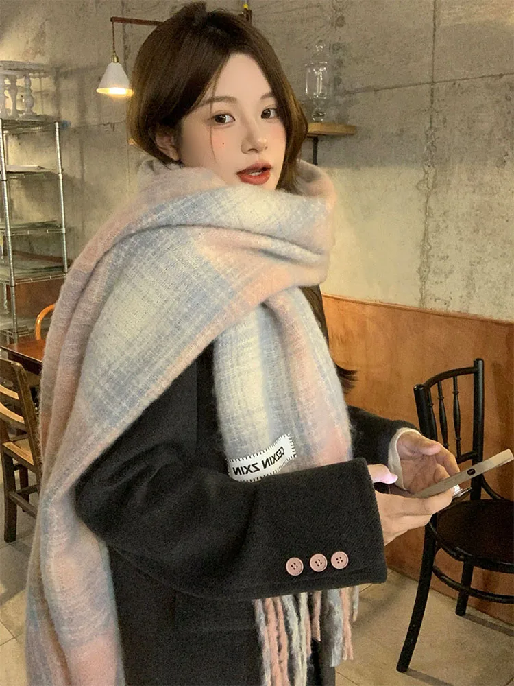 Exude elegance with this Korean-style plaid scarf, perfect for adding a touch of sophistication to any winter outfit.