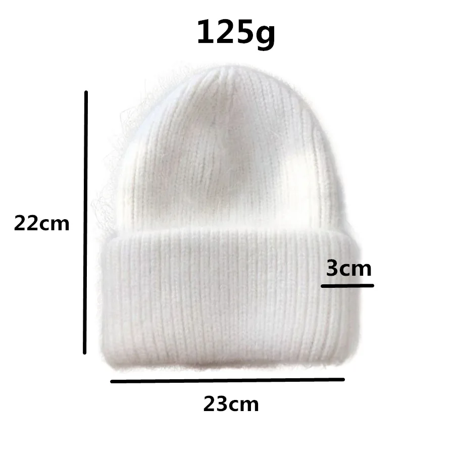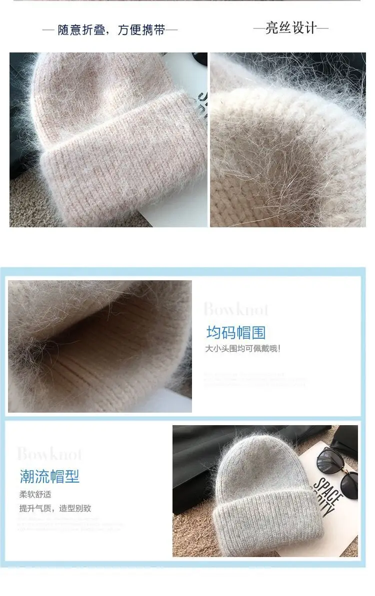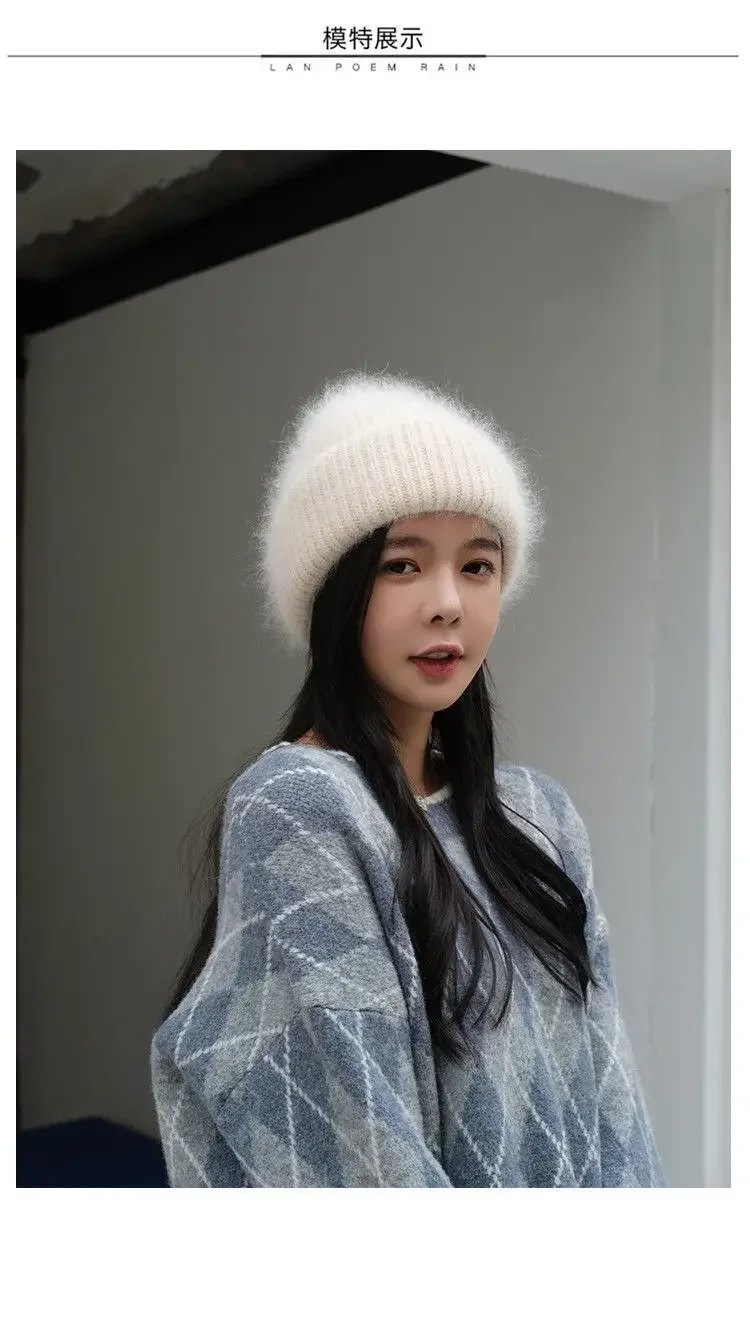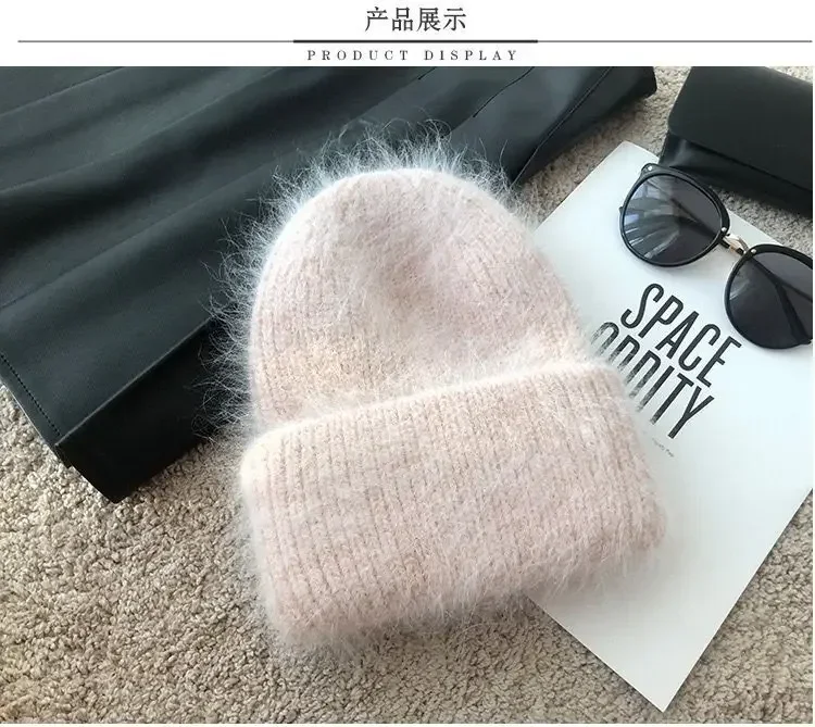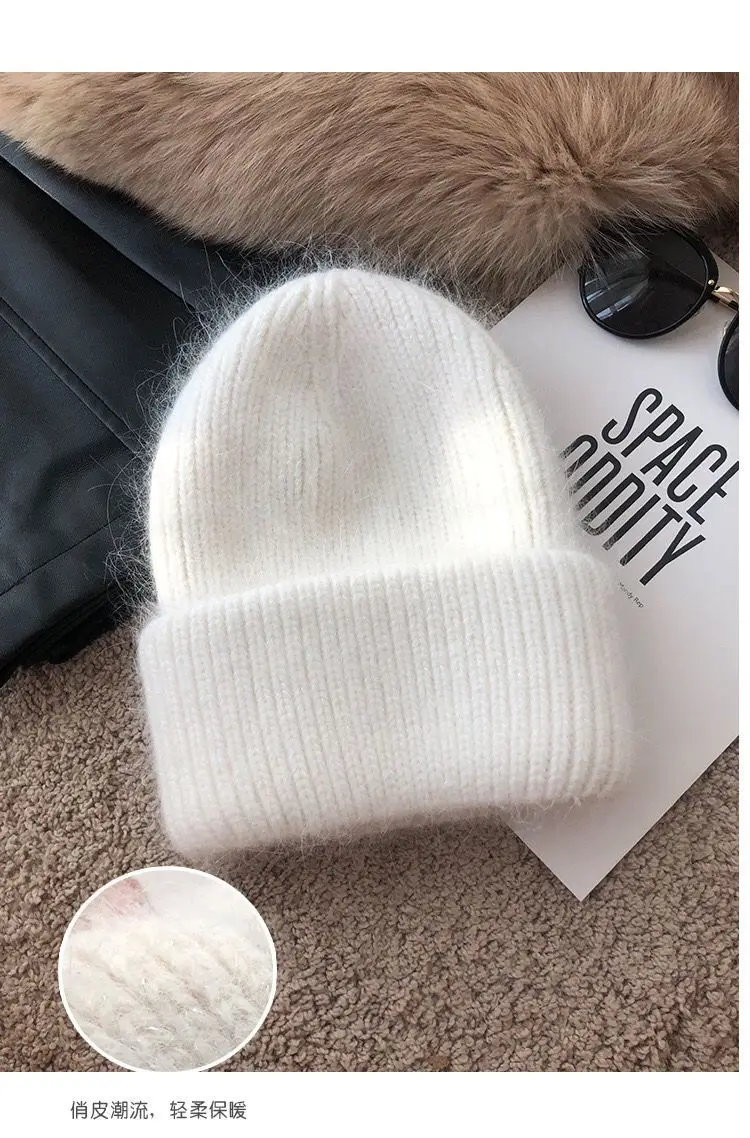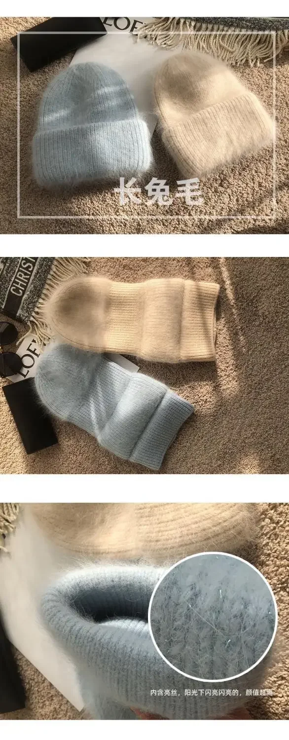 Winter Rabbit Fur Beanies Hat Soft Warm Fluffy Hats for Women Angora Knitted Skullies Beanies Female