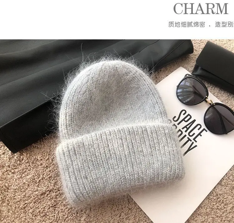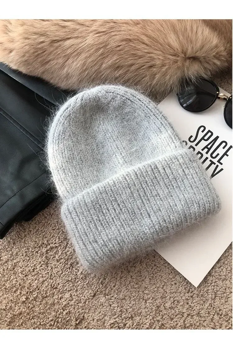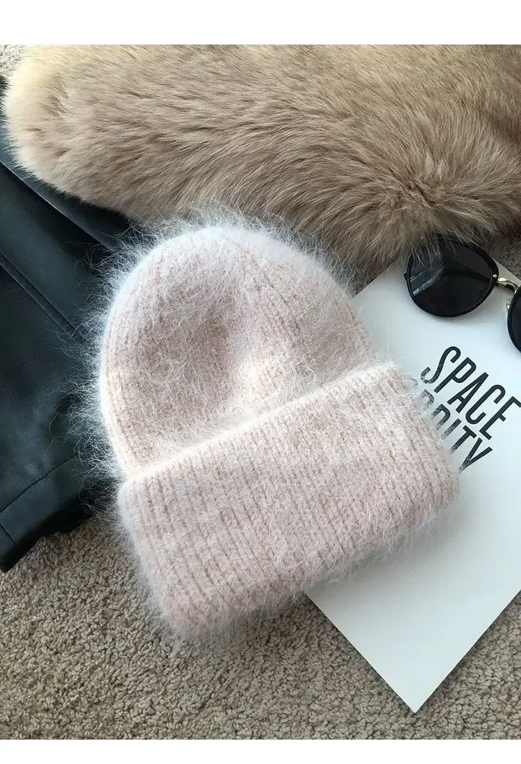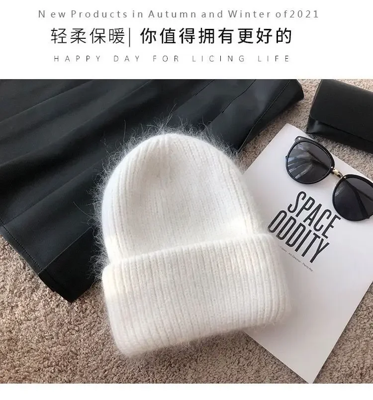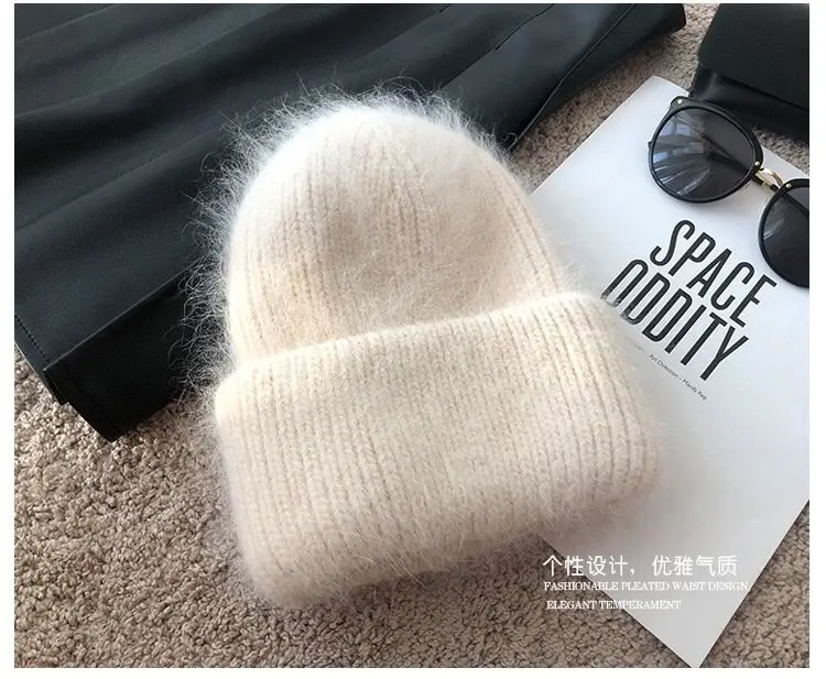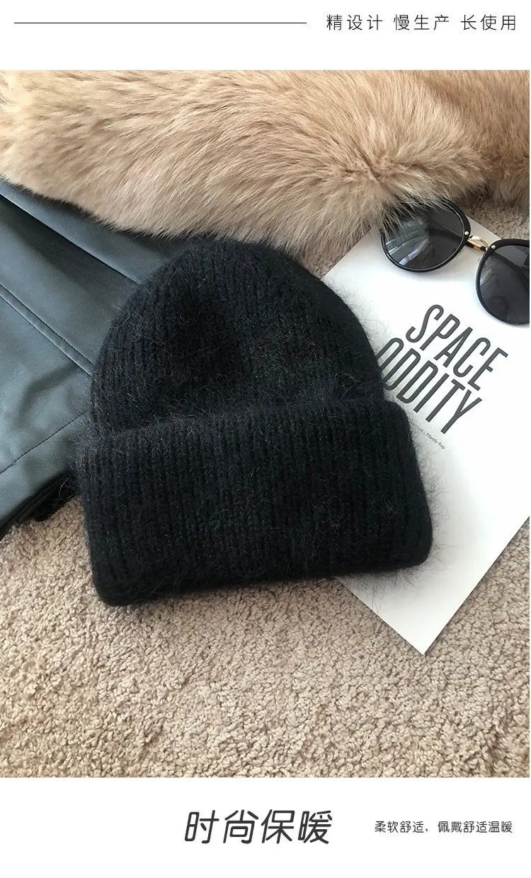 Winter Rabbit Fur Beanies Hat Soft Warm Fluffy Hats for Women Angora Knitted Skullies Beanies Female