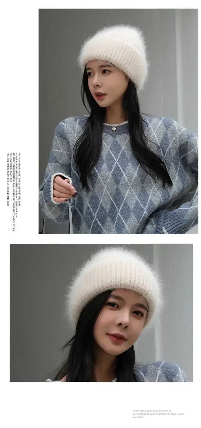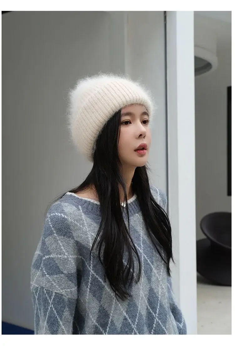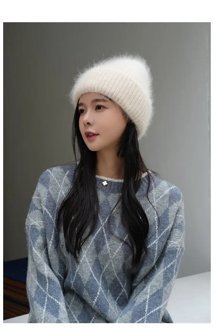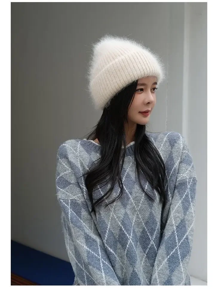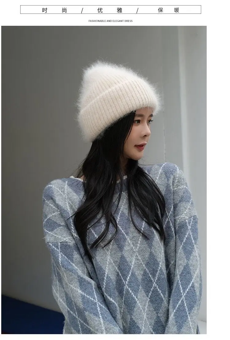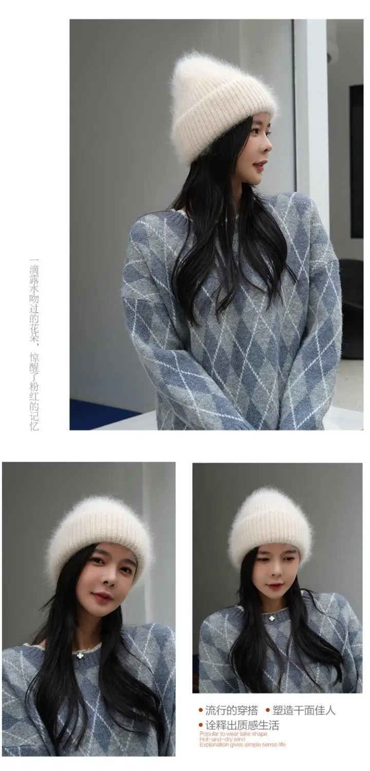 Winter Rabbit Fur Beanies Hat Soft Warm Fluffy Hats for Women Angora Knitted Skullies Beanies Female