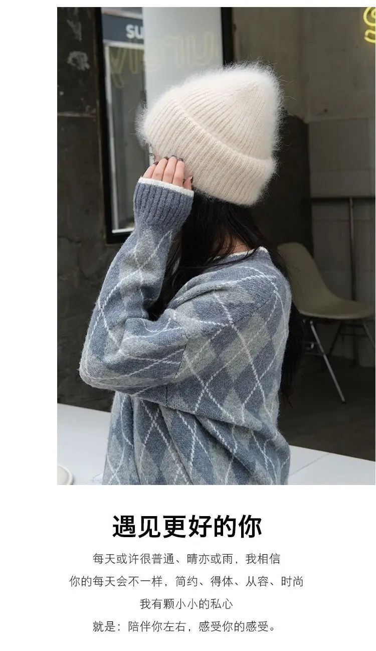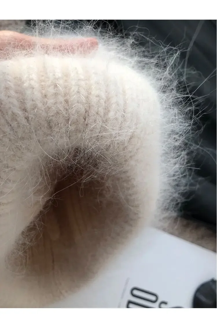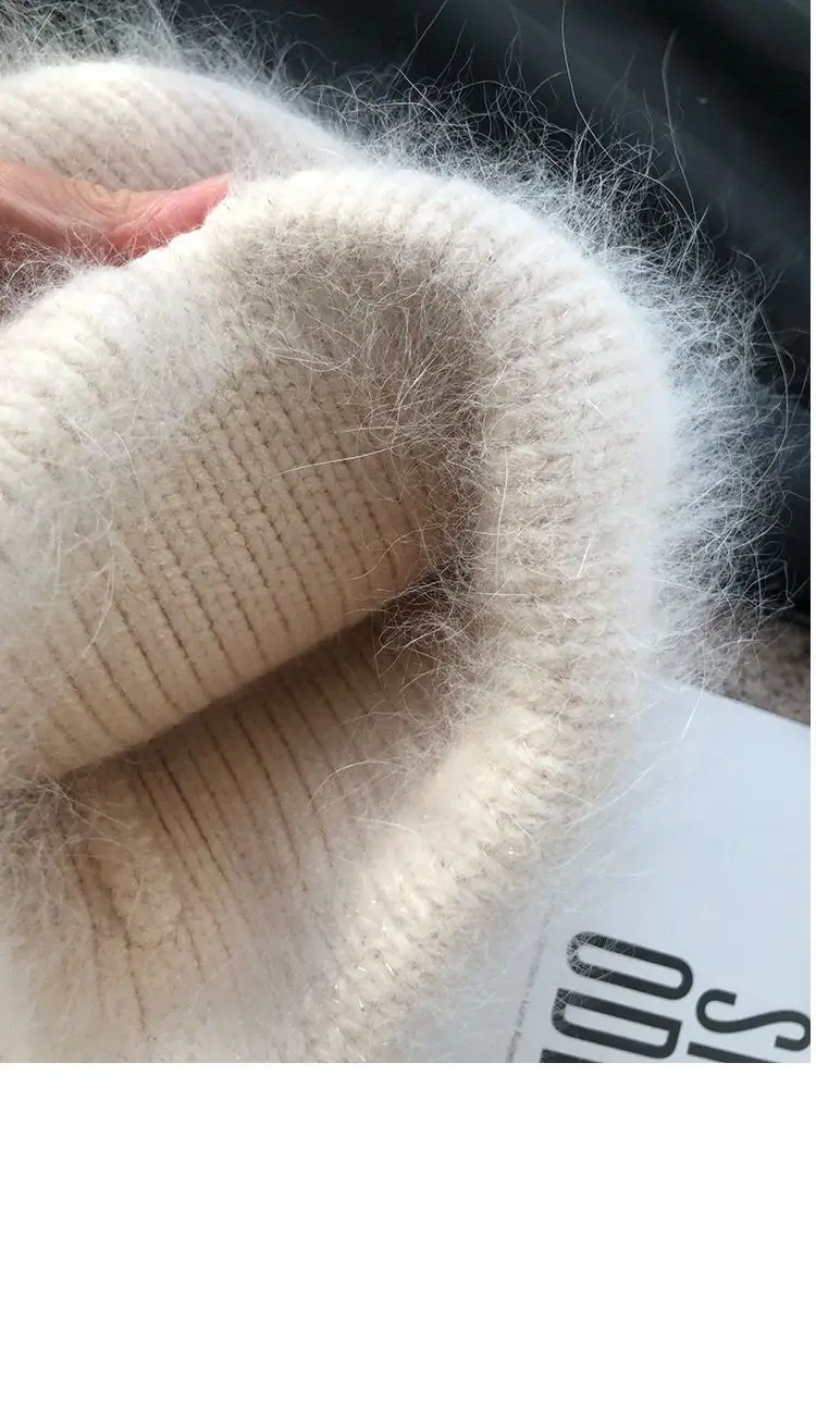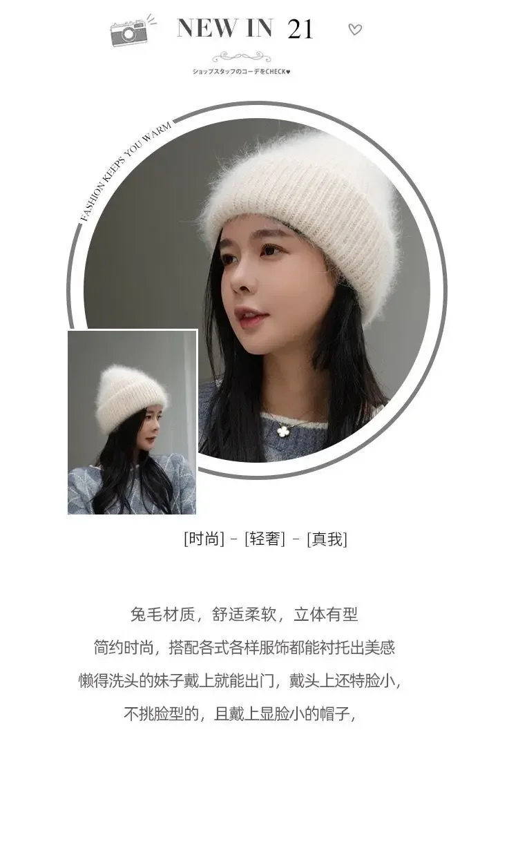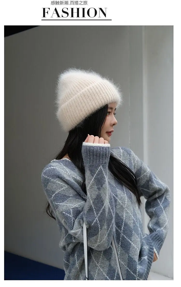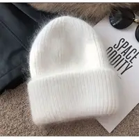Winter Rabbit Fur Beanies Hat Soft Warm Fluffy Hats for Women Angora Knitted Skullies Beanies Female