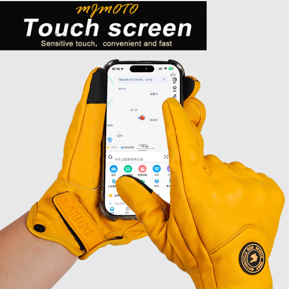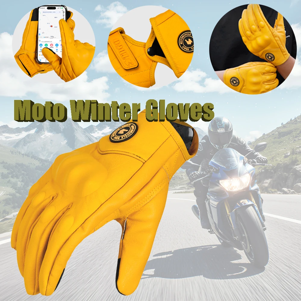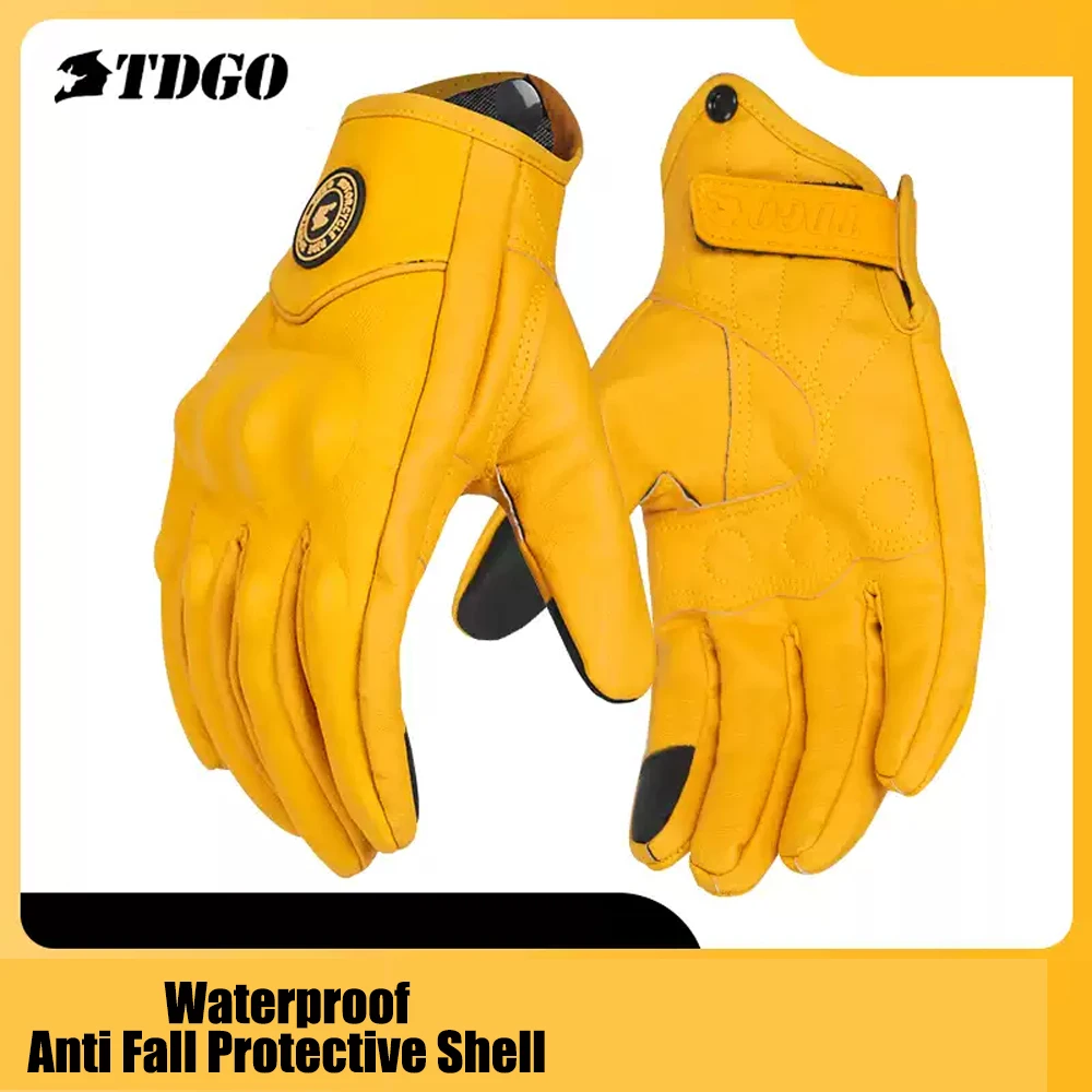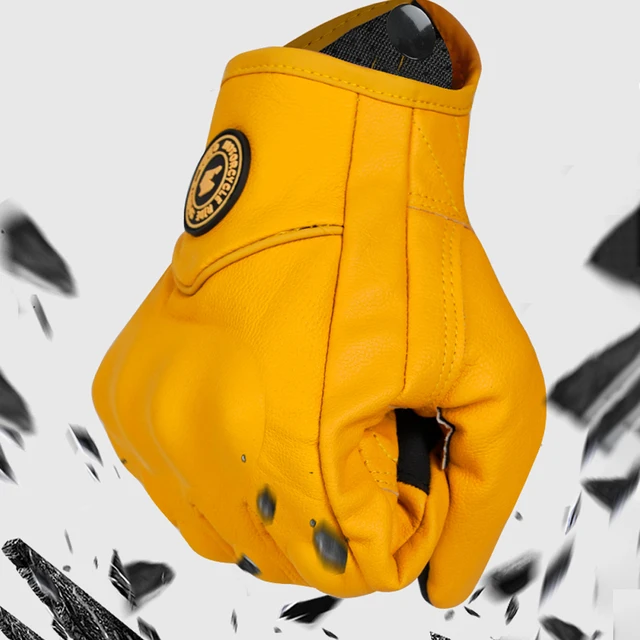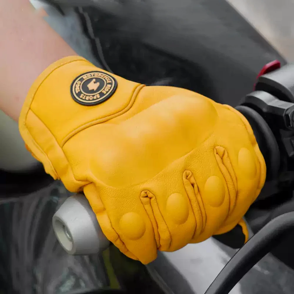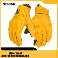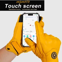 Retro Yellow PU Leather Motorcycle Gloves Men Women Motorbike Racing Gloves Touch Screen Motocross Moto Glove Four Seasons
