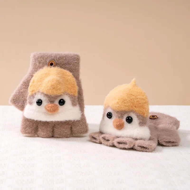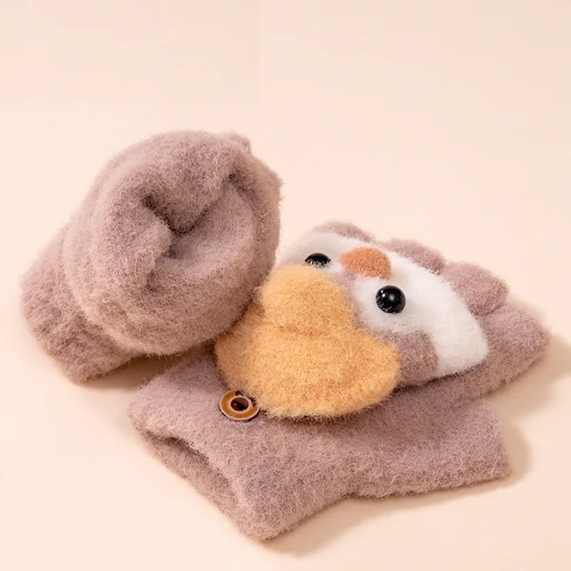 Winter School Students Writing Gloves with Flip Cover Boys Girls Cute Penguin Gloves Kids Warm Cartoon