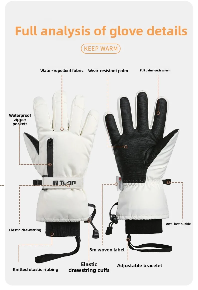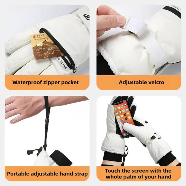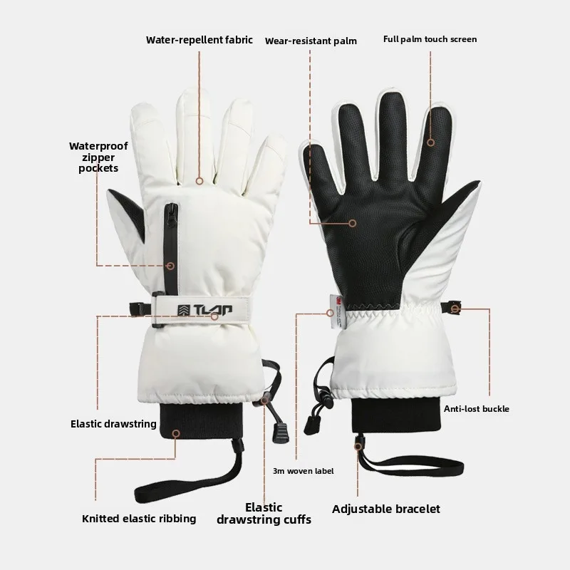 GTUBIKE Thermal Ski Gloves Men Women Winter Fleece Waterproof Warm Child Snowboard Snow Gloves 3 Fingers Touch Screen for Skiing