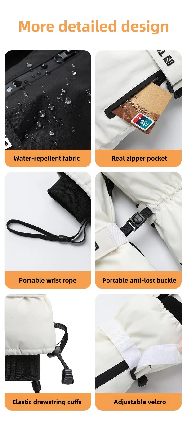 Winter Ski Gloves Heated Gloves Waterproof Thermal Motorcycle Men’s Gloves Snowboard Fleece-lined Black