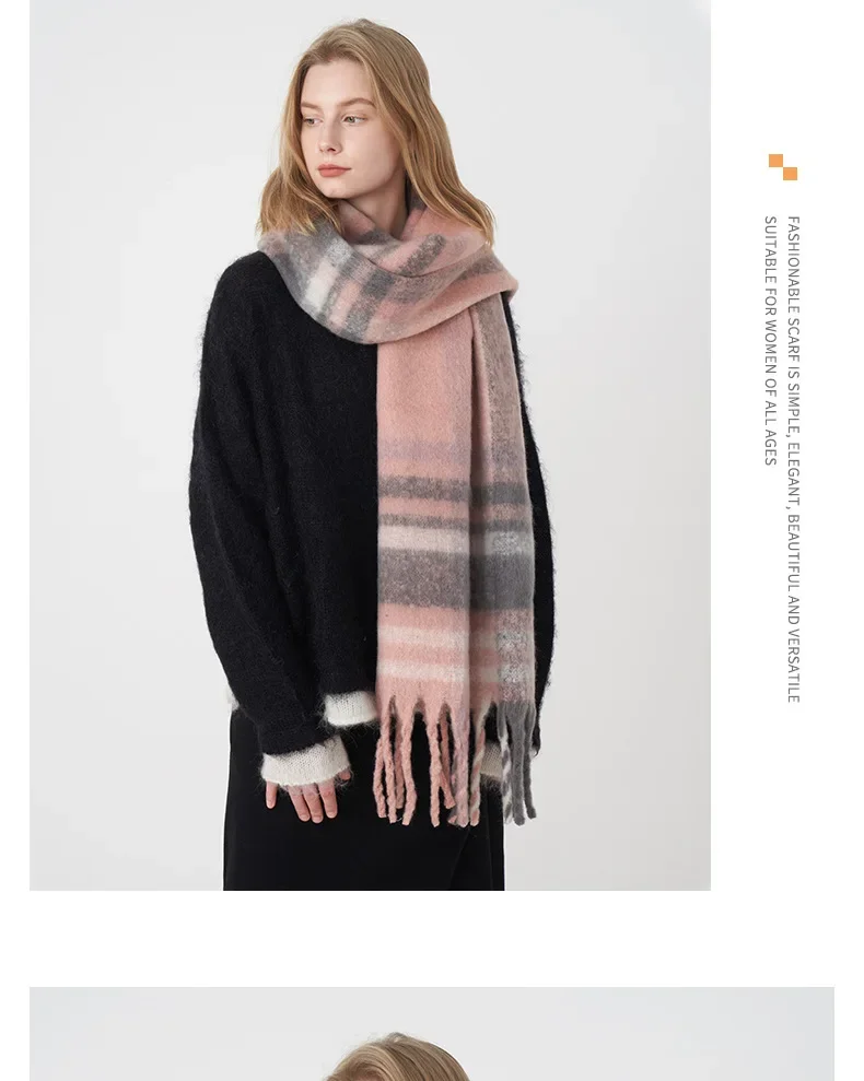 Knitted Winter Women Men Scarf Ladies Male Imitation Cashmere Pashmina Warm Vintage Plaid Scarves Bufanda Mujer Wrap Shawl New