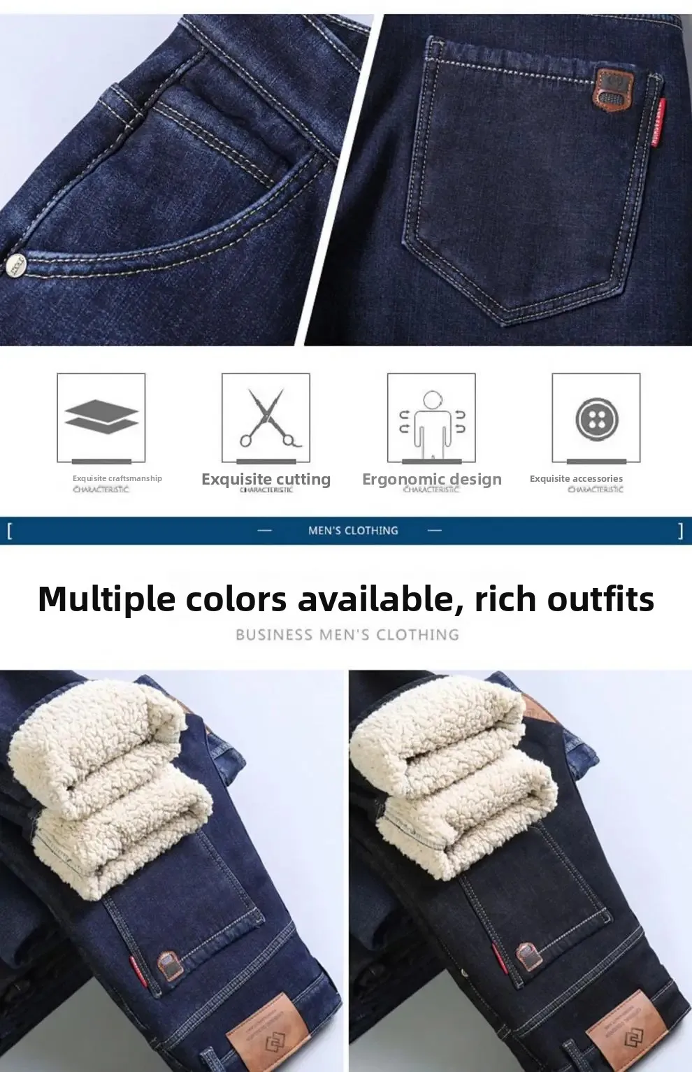 • Lambcashmere Material : Crafted from premium lambcashmere, these jeans offer unparalleled warmth and comfort during the winter months.