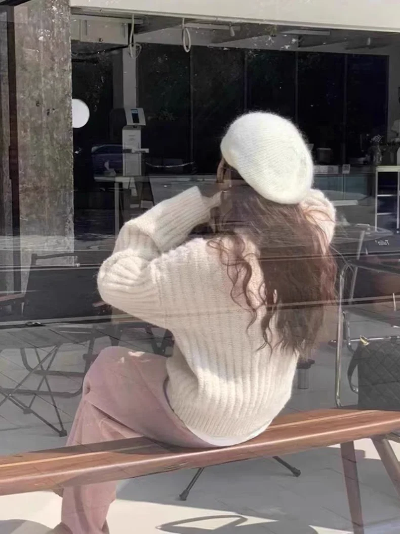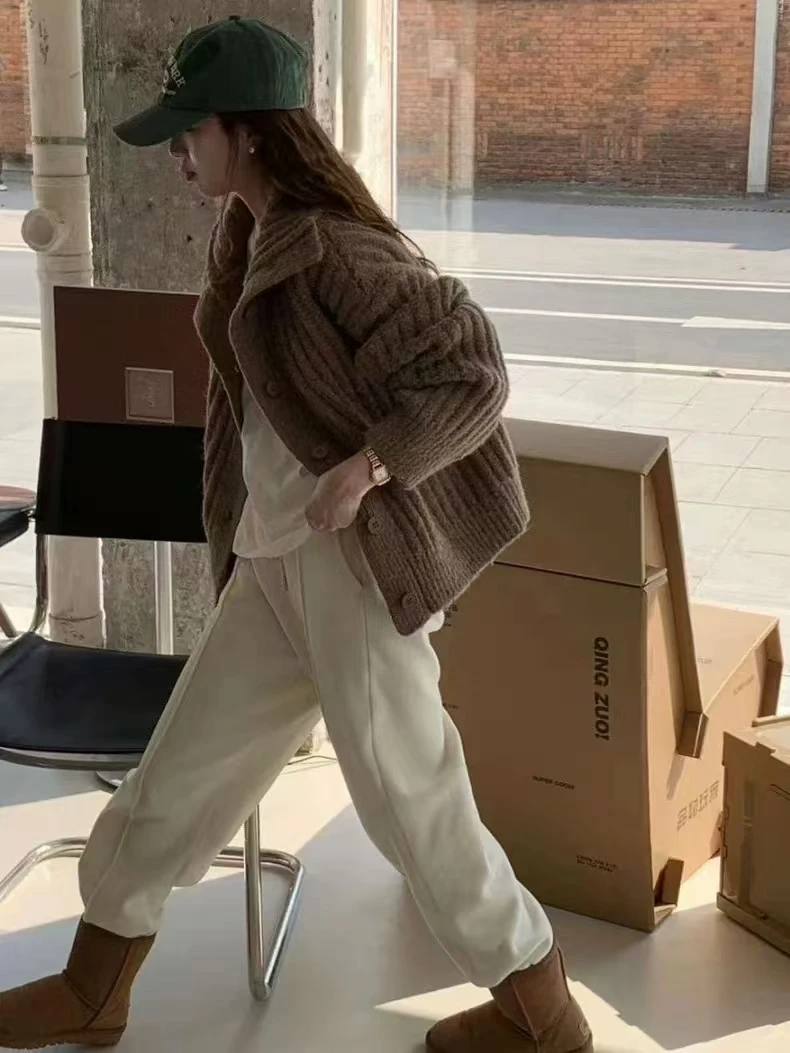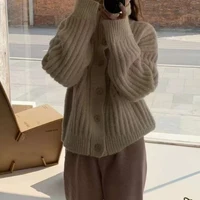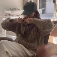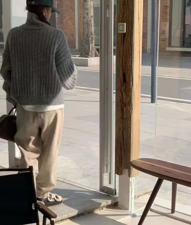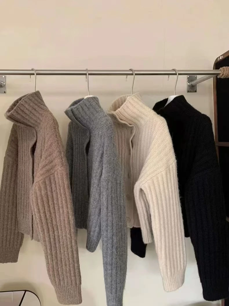 Winter Turtleneck Loose Cardigan Women Sweater Pit Strip Thick Knitted Simple Jackets Solid Casual Long Sleeve Office Clothing