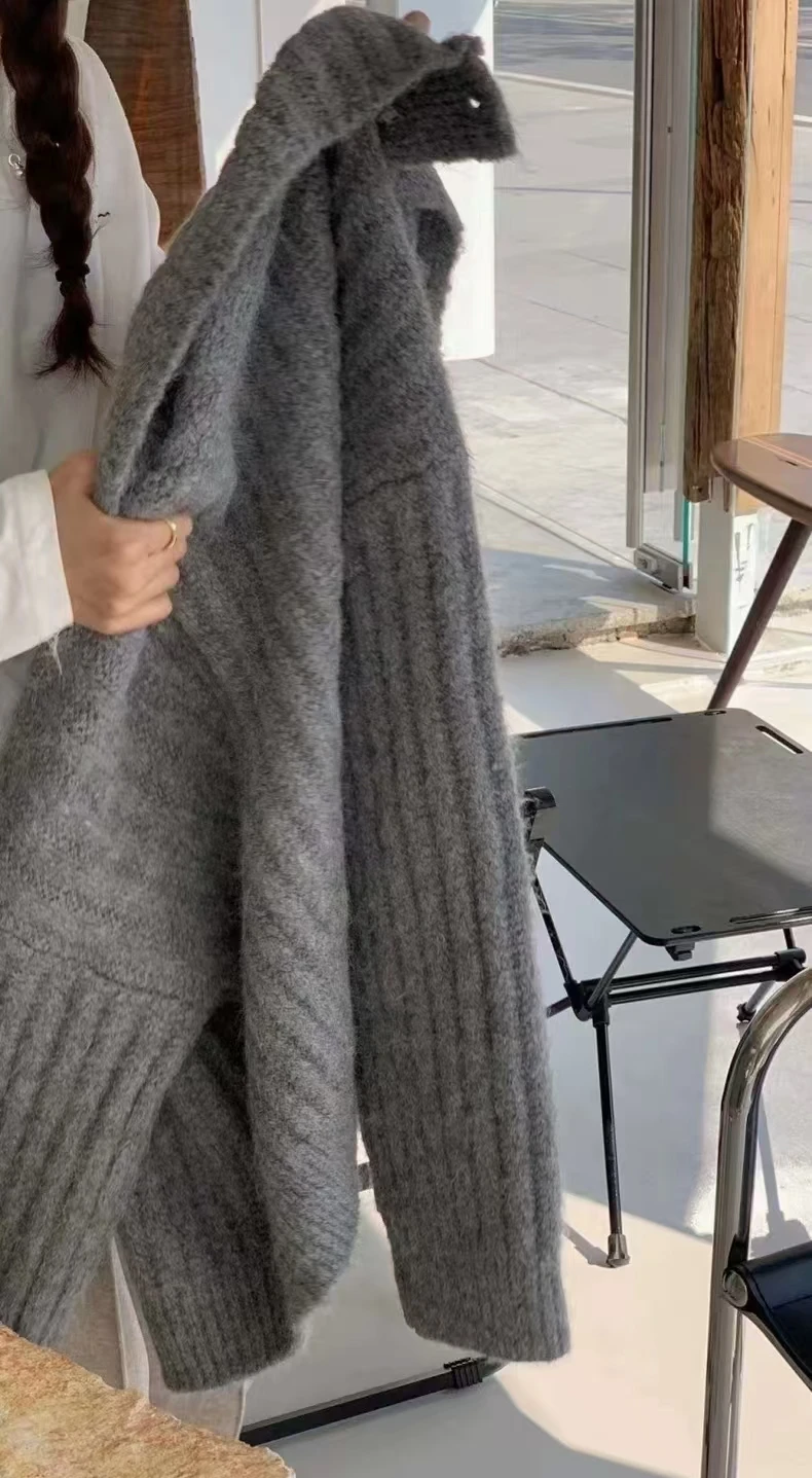 Winter Turtleneck Loose Cardigan Women Sweater Pit Strip Thick Knitted Simple Jackets Solid Casual Long