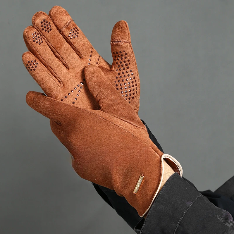 Winter Warm Gloves for Men’s Outdoor Cycling and Driving Suede and Fleece Thickened Non-slip Touch