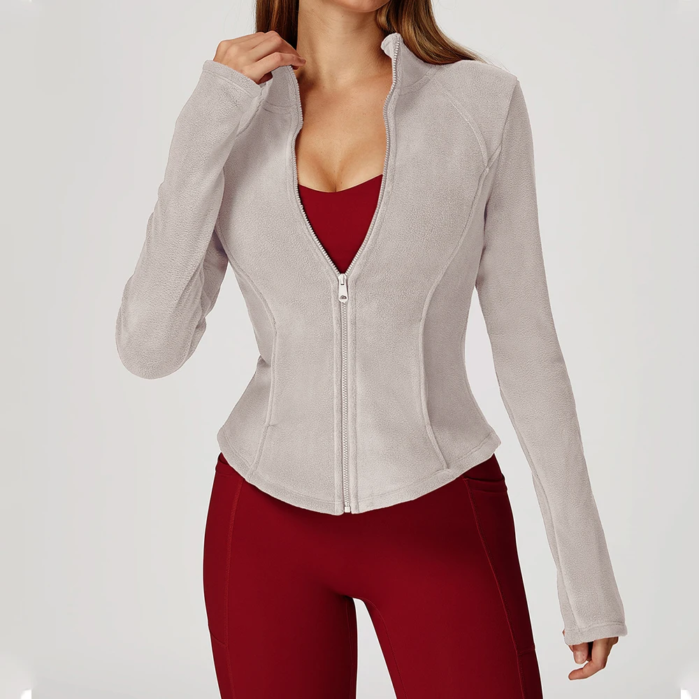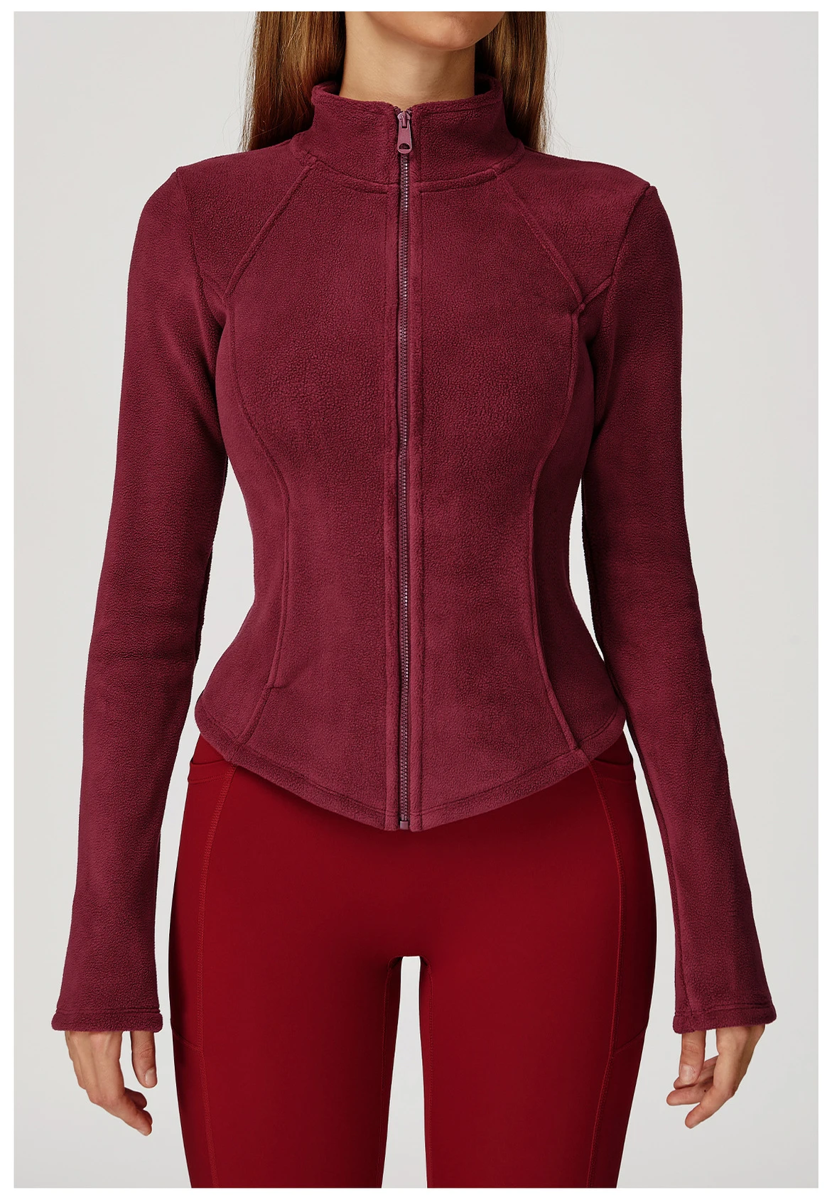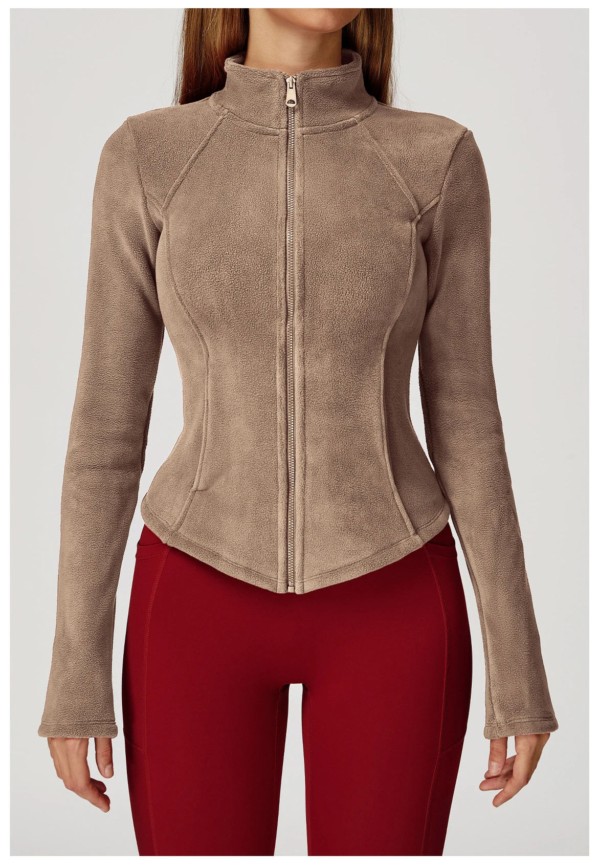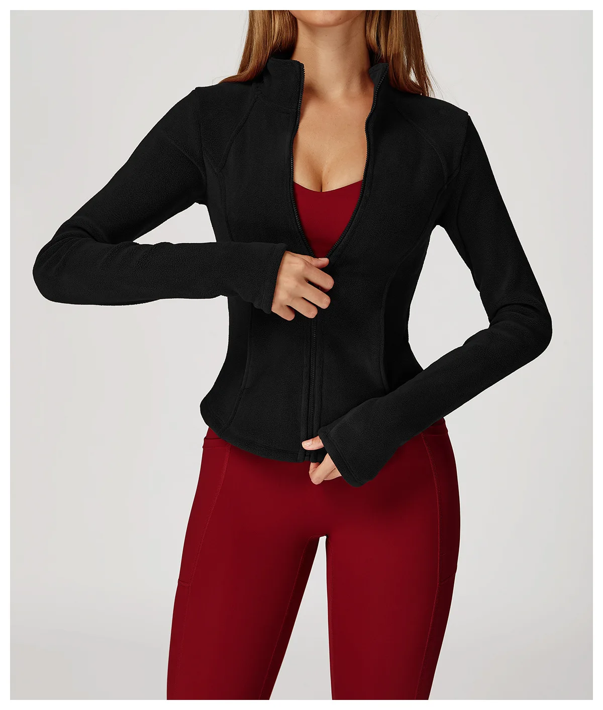 Winter Warm Jacket Women’s Velvet Yoga Long Sleeved Yoga Shirt Outdoor Running Coat Single Piece