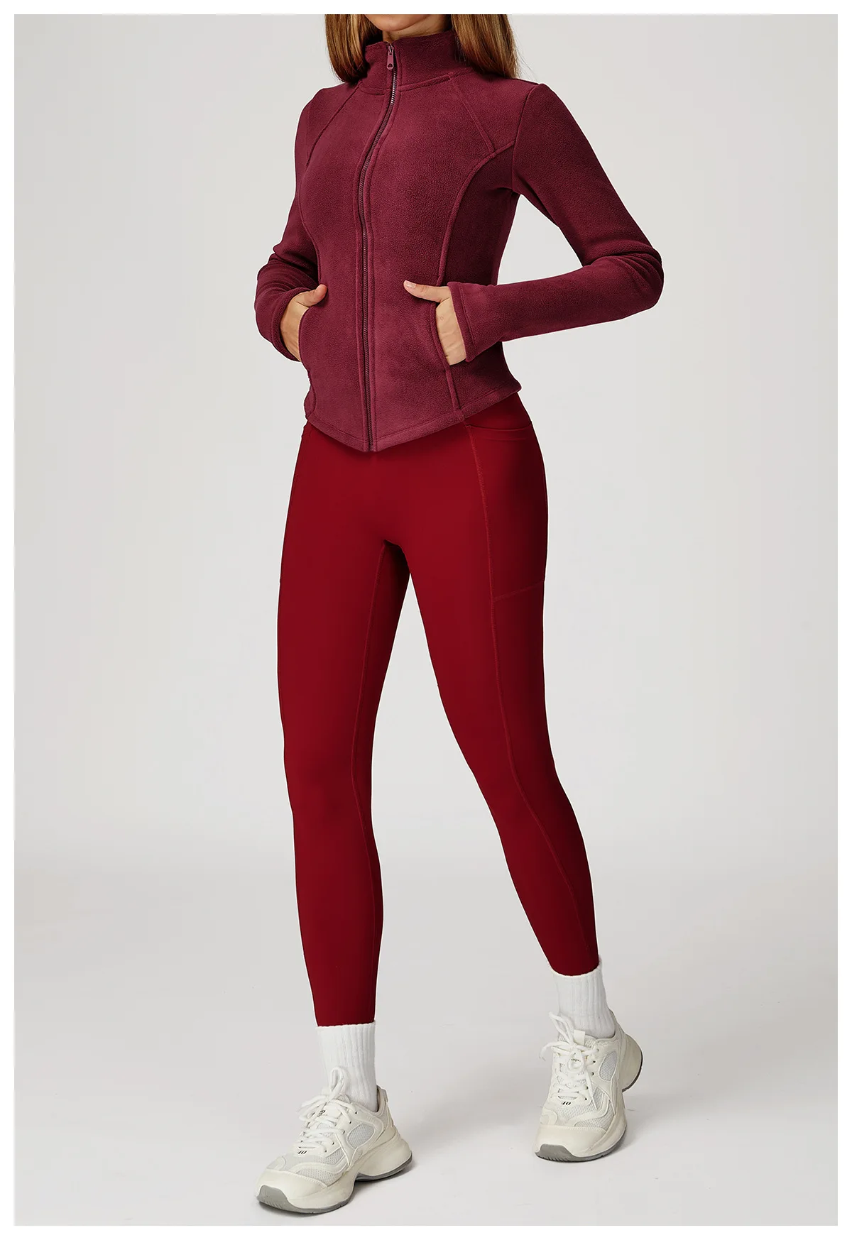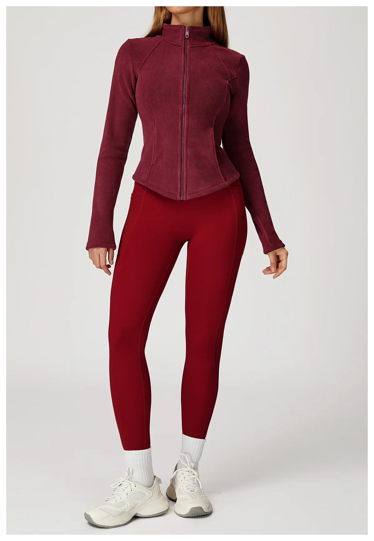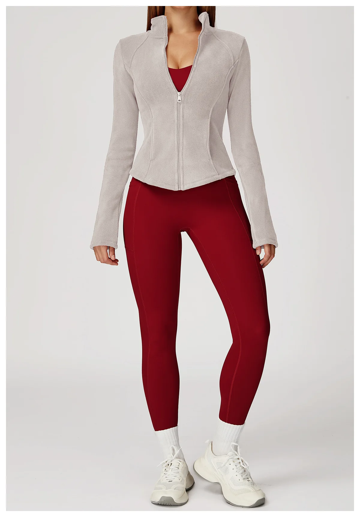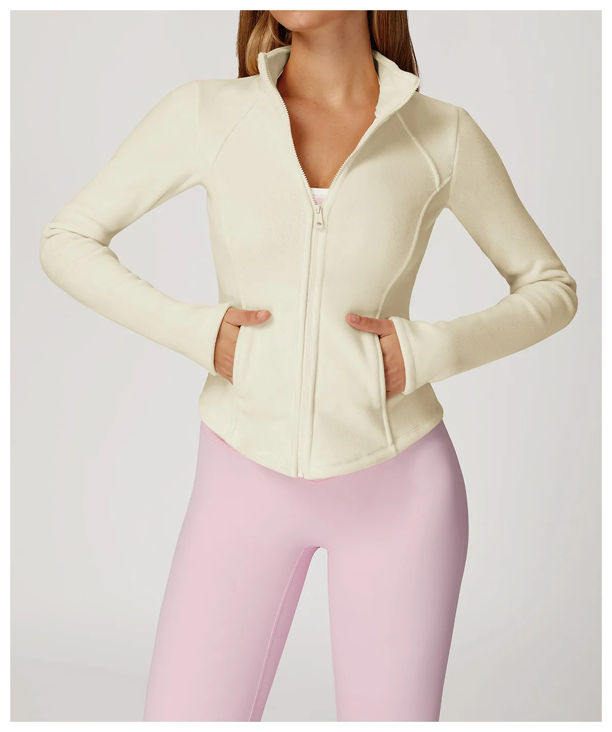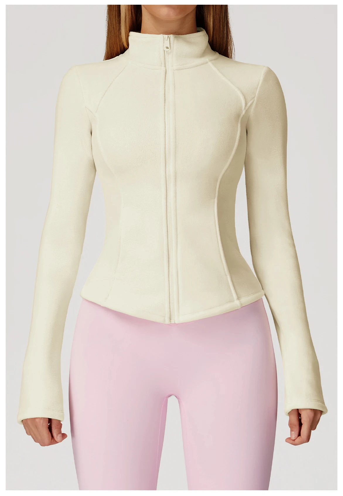Winter Warm Jacket Women’s Velvet Yoga Long Sleeved Yoga Shirt Outdoor Running Coat Single Piece