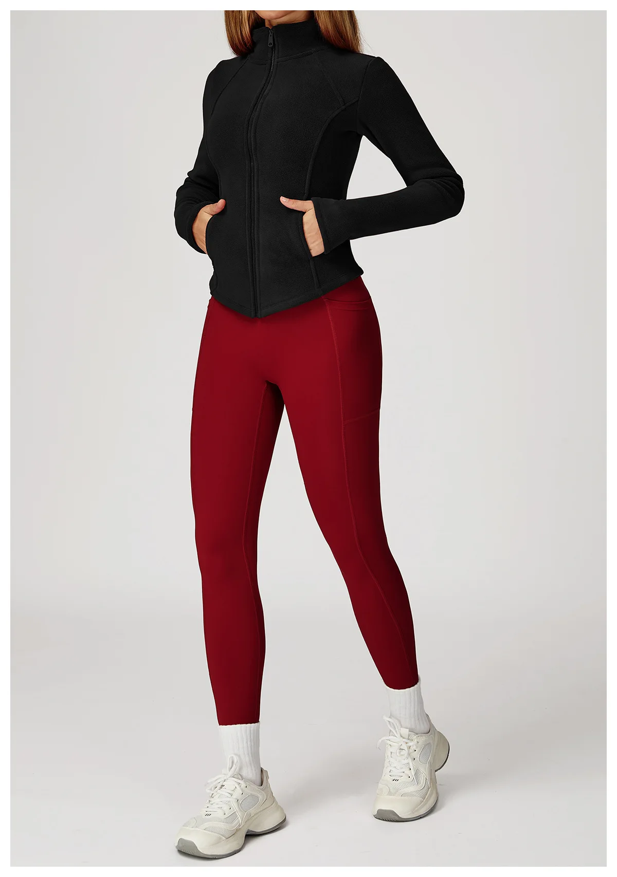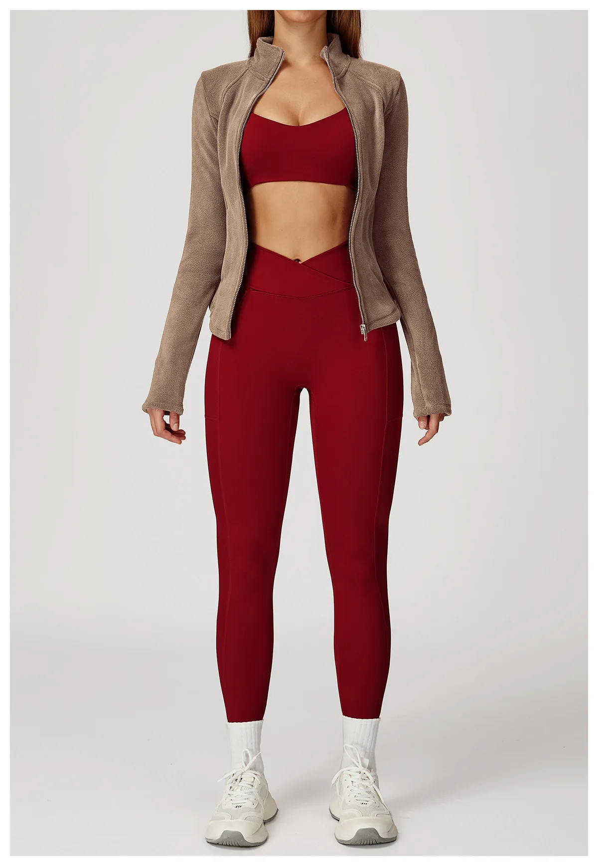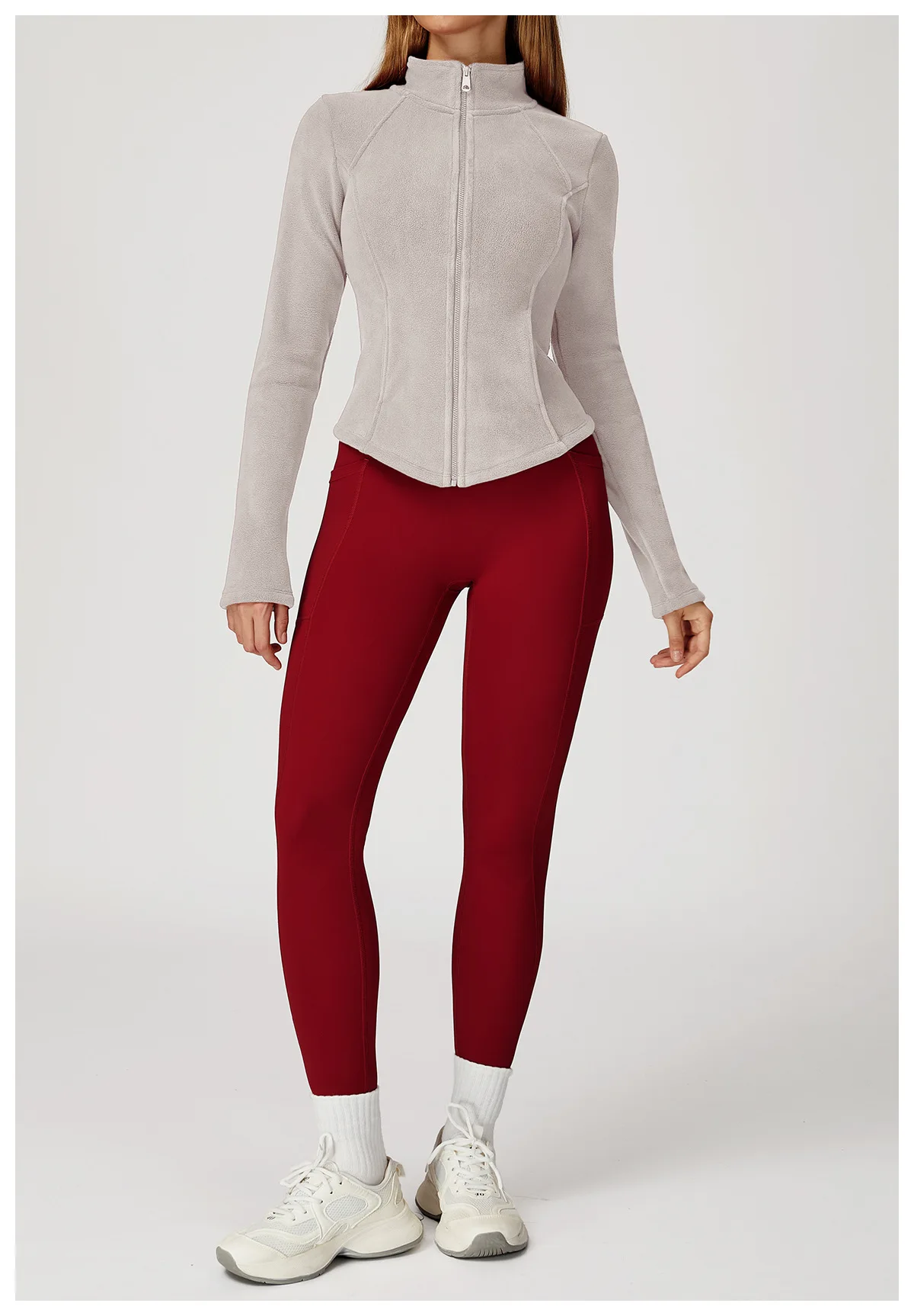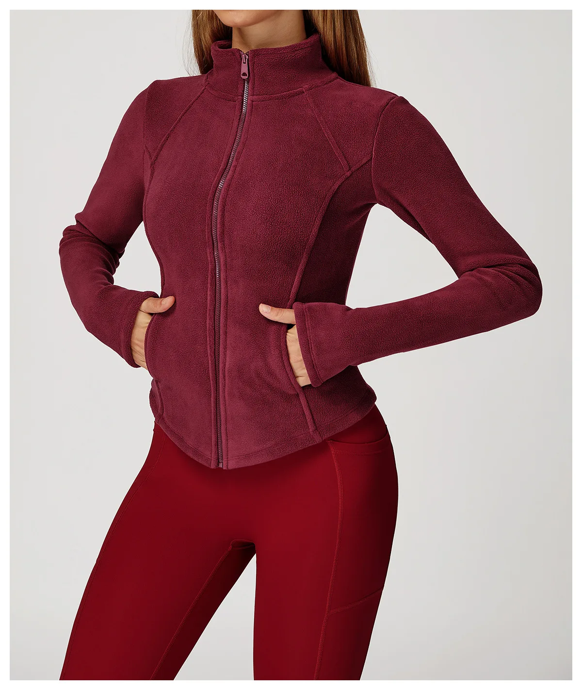 Winter Warm Jacket Women’s Velvet Yoga Long Sleeved Yoga Shirt Outdoor Running Coat Single Piece
