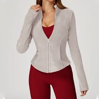 Quick Dry Stand Collar Fitness Jacket For Women Slim-Fit Zipper Pocket Yoga Tops Long Sleeve Tight Running Sports Cycling Jacket