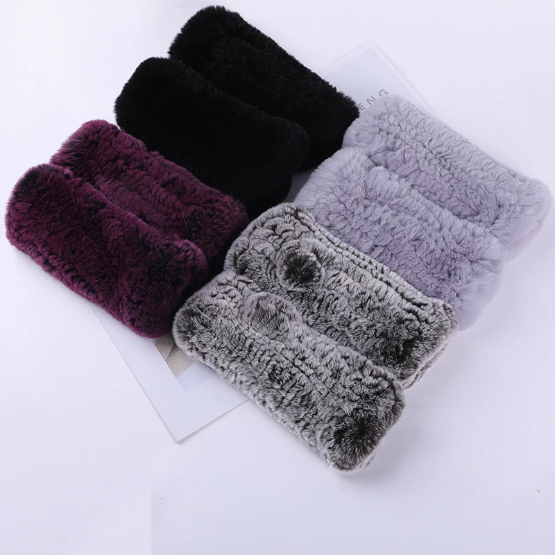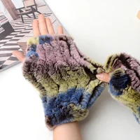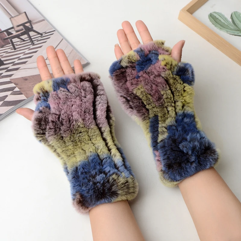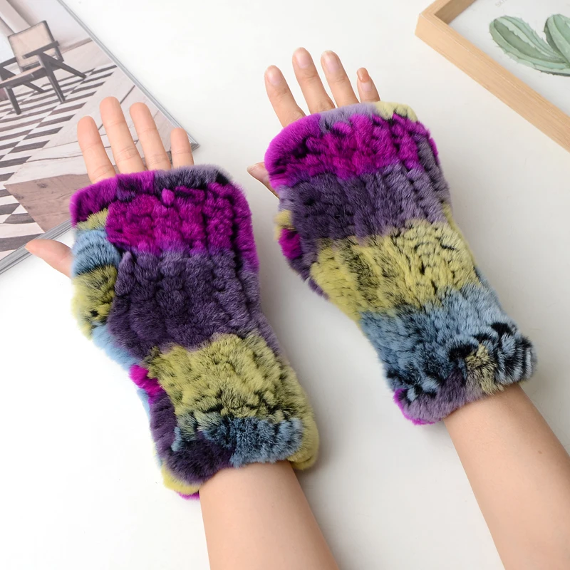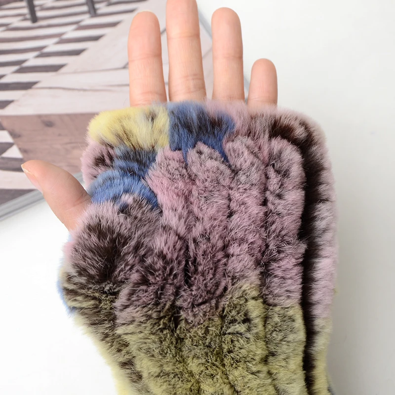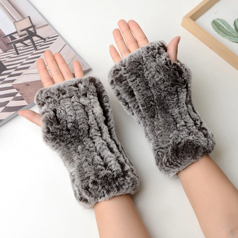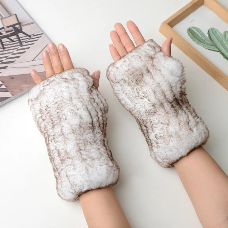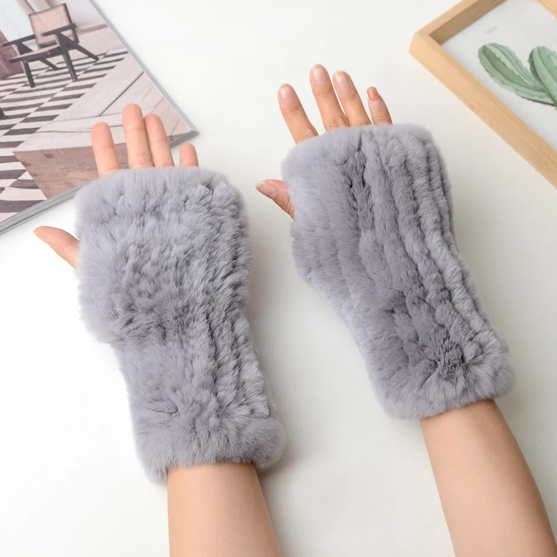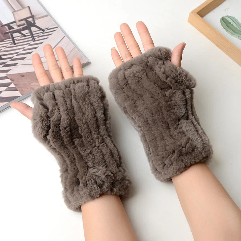 New Women 100% Real Genuine Knitted Rex Rabbit Fur Mittens Winter Warm Lady Real Fur Fingerless Gloves Handmade Knit Fur Mitten