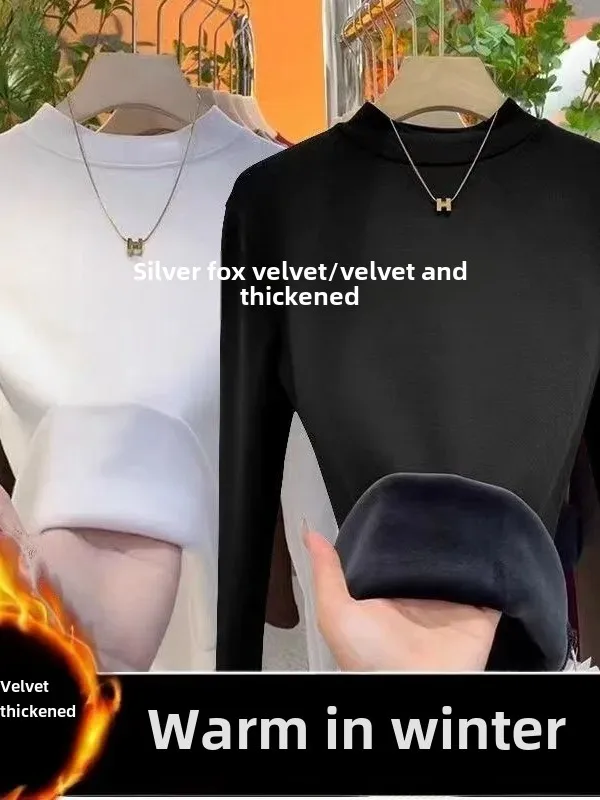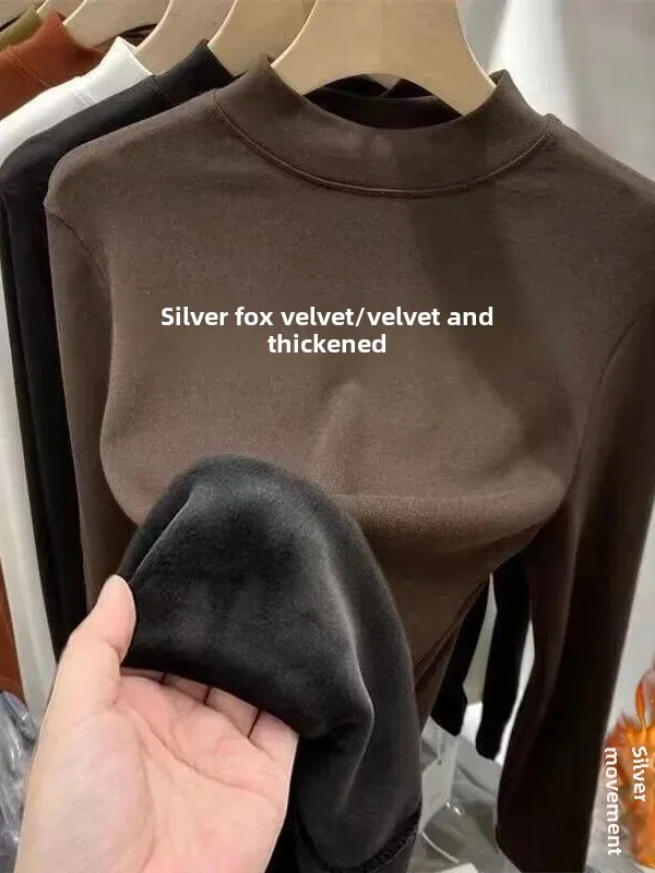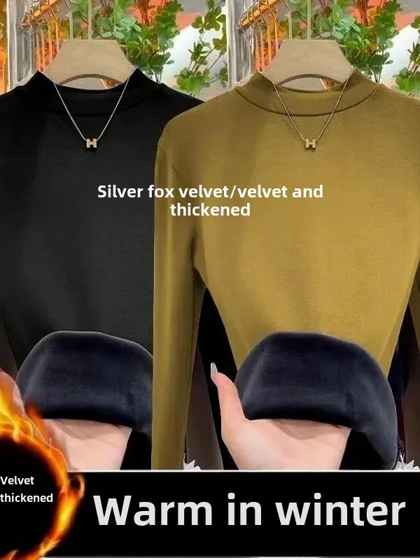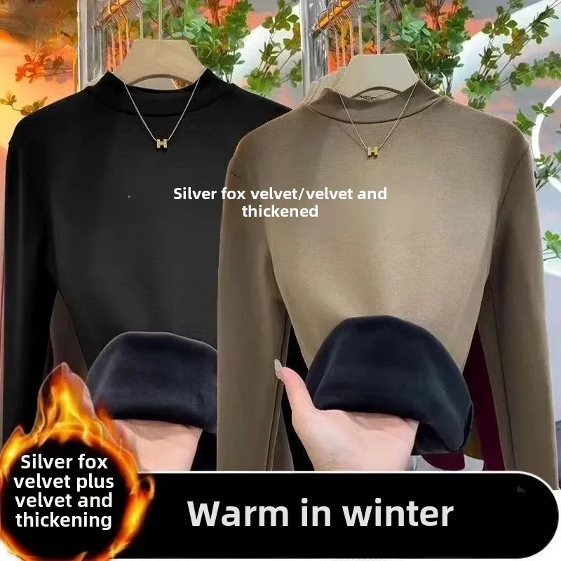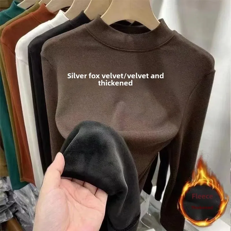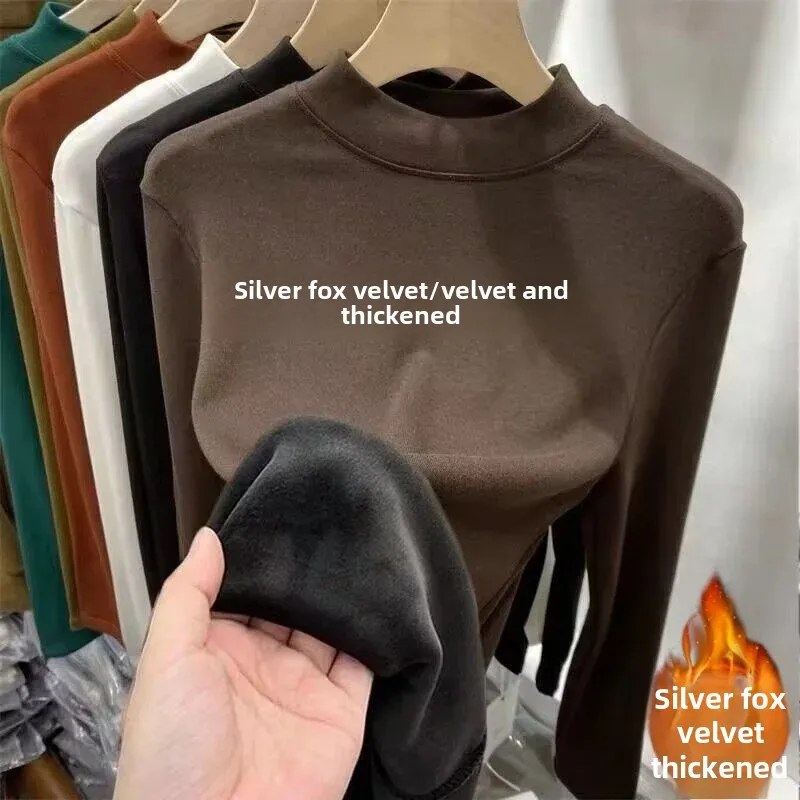 Winter Warm Thickened Polar Fleece Half Polo Turtle Neck Long Sleeve Base Layer Top Women's Smooth Slimming Inner Top