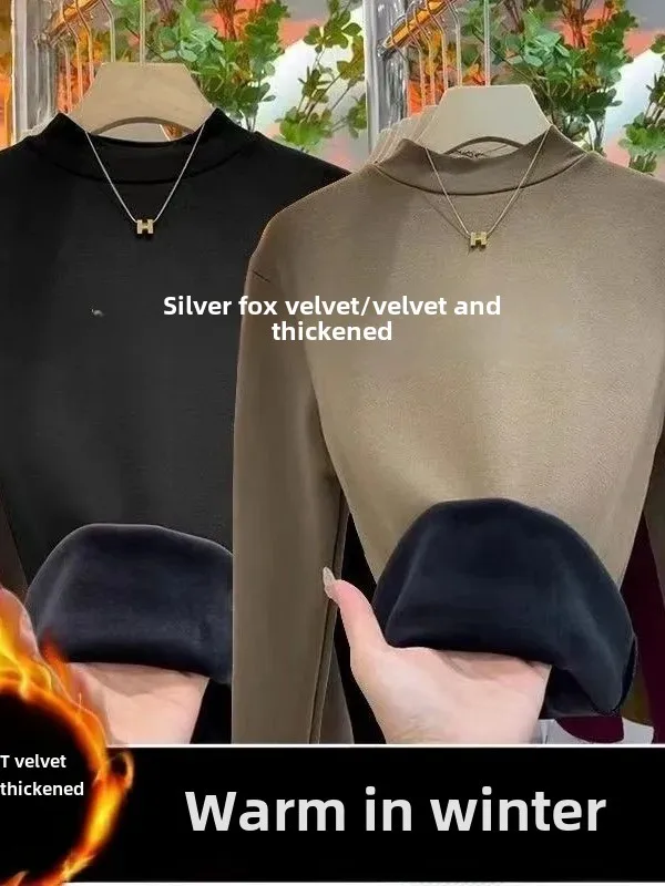 Winter Warm Thickened Polar Fleece Half Polo Turtle Neck Long Sleeve Base Layer Top Women's Smooth Slimming Inner Top