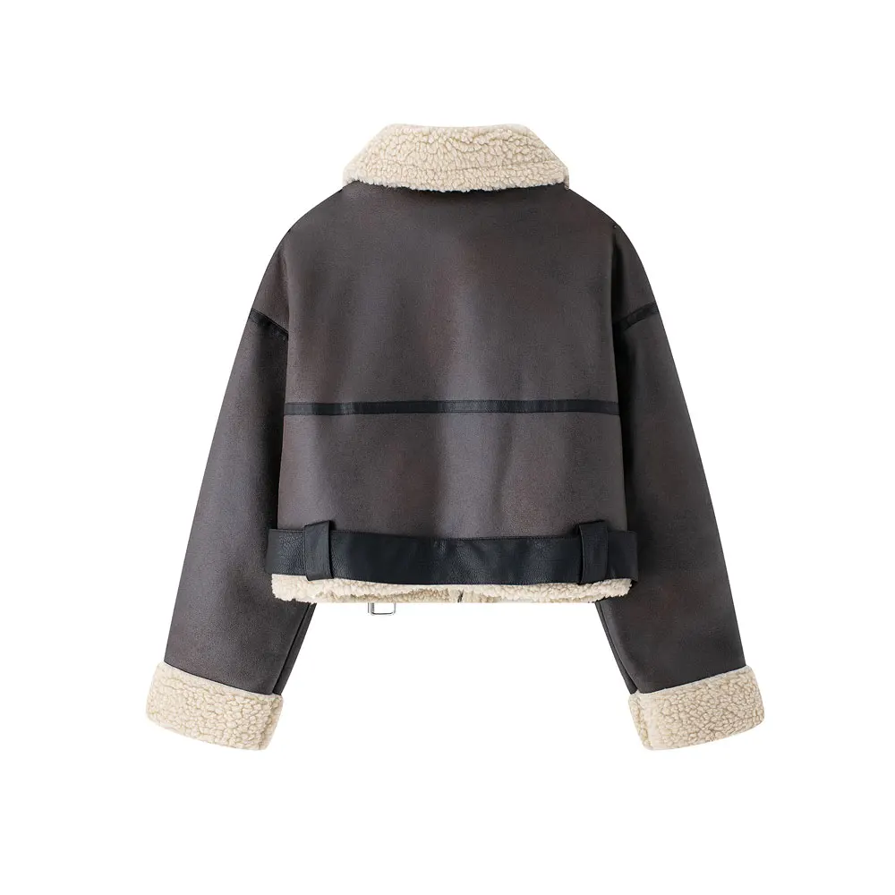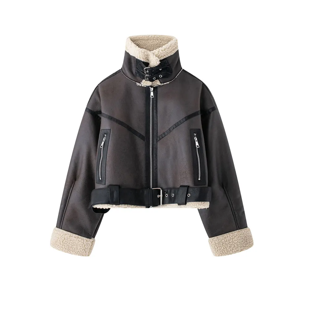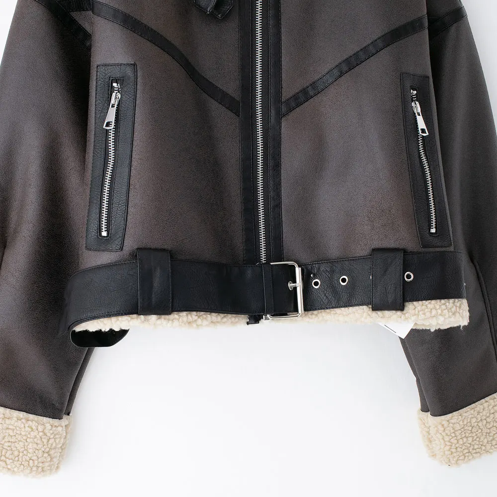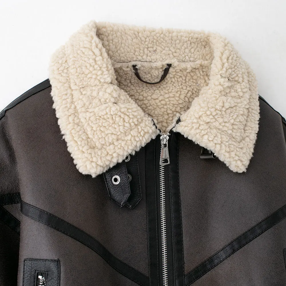 Women's Fashion fall and winter new Europe and the United States retro casual solid color long-sleeved pocket zipper jacket
