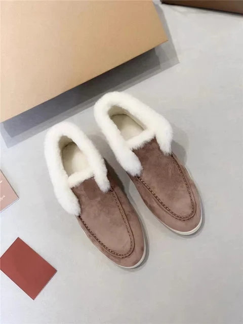 Price range: 26.66$ through 29.24$Winter Women’s Fur Lined Leather Loafers Warm Flat Shoes Unisex Designer Luxury Slip-On Footwear
