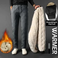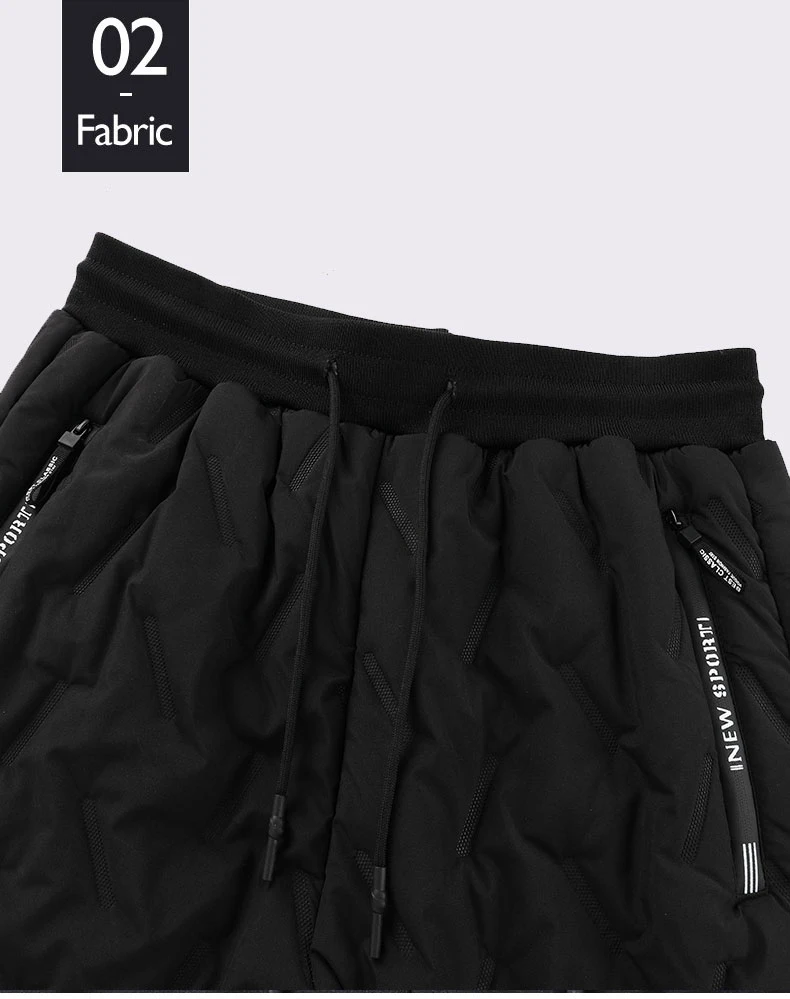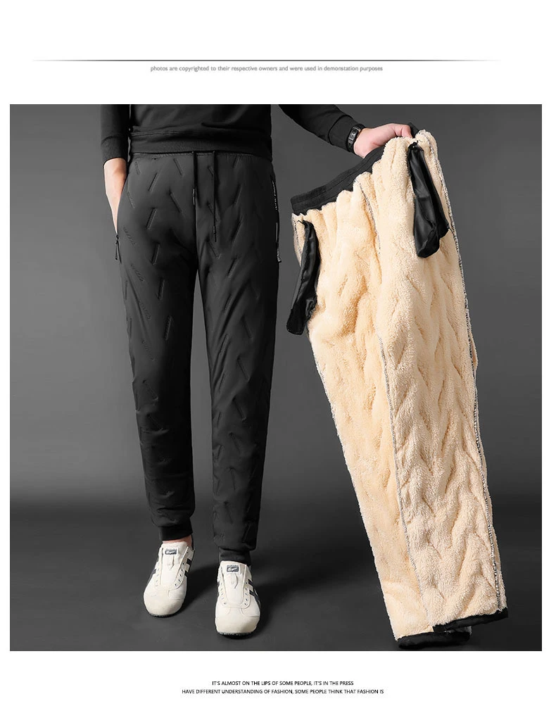 Winter Zip Pockets Thicken Fleece Sweatpants Men Joggers Black Grey Down Cotton Warm Pants Male Water