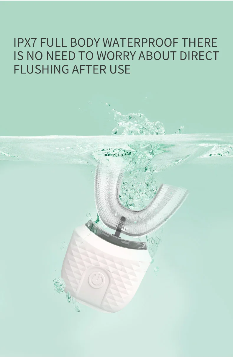 (4) Unique U-shape Bite Design:U-shaped bite is designed to fit the mouth shape,can clean the surface and interior of the teeth in all directions.