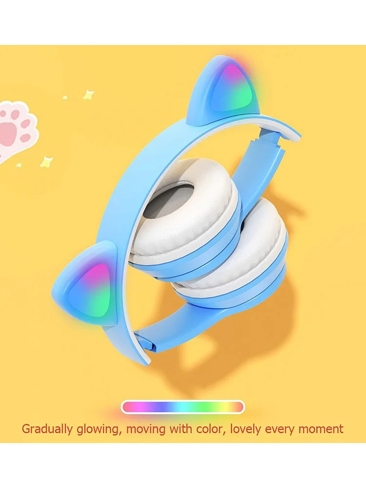 Wireless Headphones Cat Ear Gaming Headset Glow Light Bluetooth-Compatible Helmets Stereo Bass Sports Headphones for PC Phone