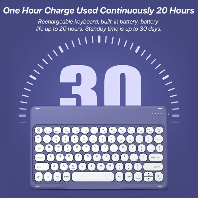 Rechargeable keyboard,built-in battery,battery life up to 20 hours.Standby time is up to 30 days